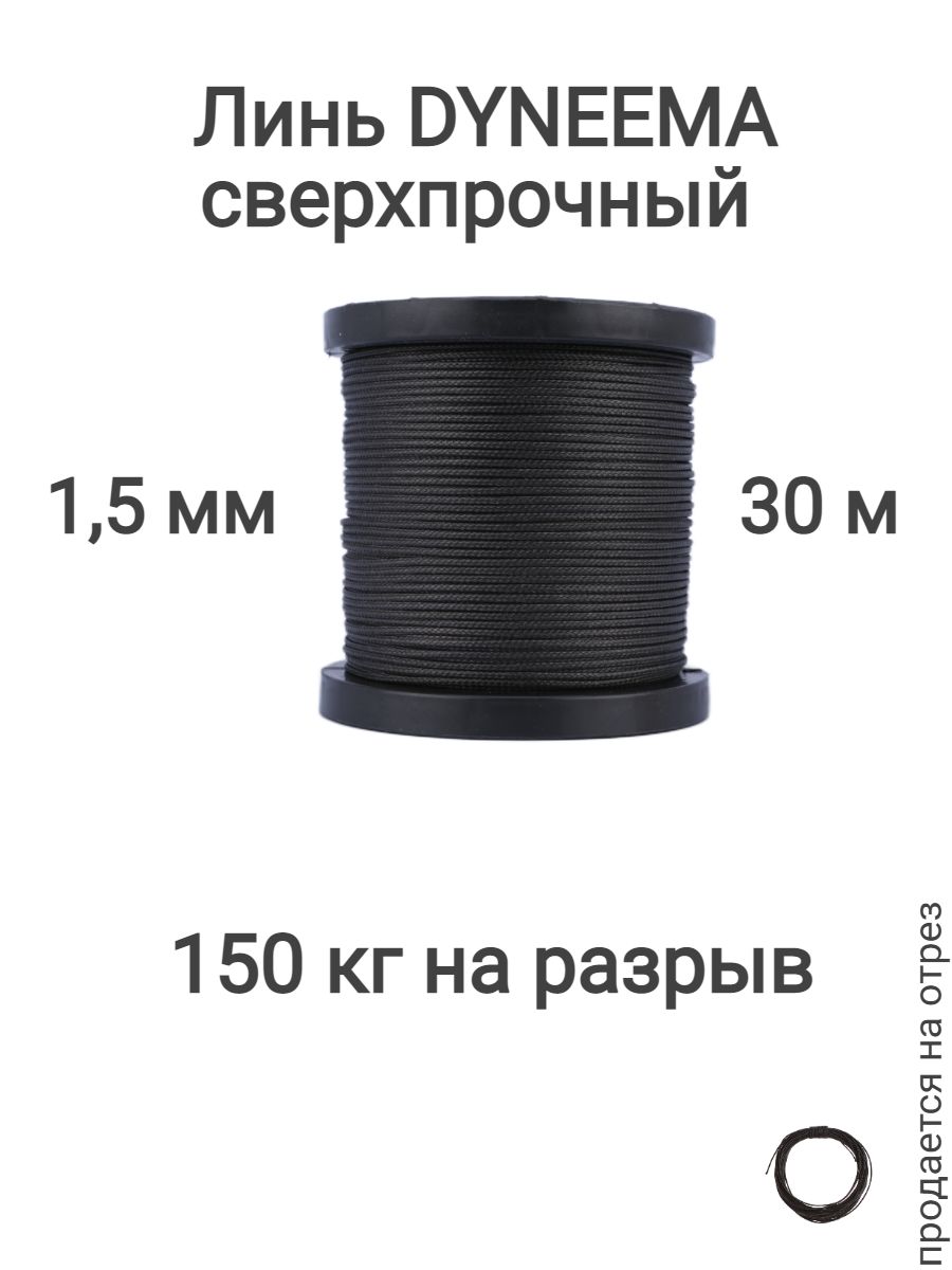 Линь Dyneema, для подводного ружья, охоты, черный 1.5 мм нагрузка 150 кг длина 30 метров. Narwhal