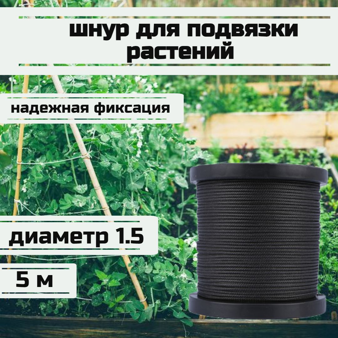 Шнур для подвязки растений, лента садовая, черная 1.5 мм нагрузка 150 кг длина 5 метров/Narwhal