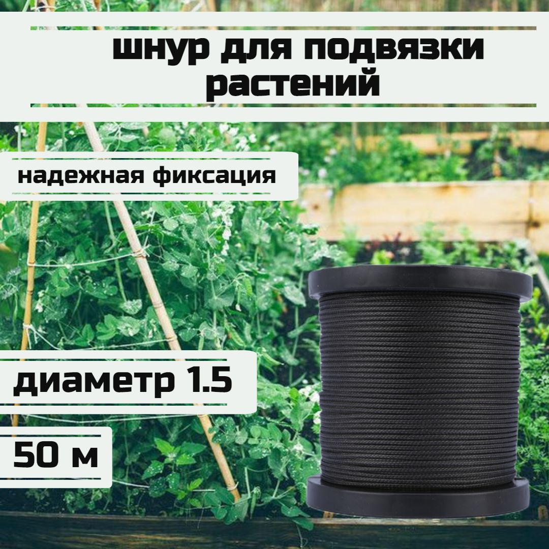Шнур для подвязки растений, лента садовая, черная 1.5 мм нагрузка 150 кг длина 50 метров/Narwhal