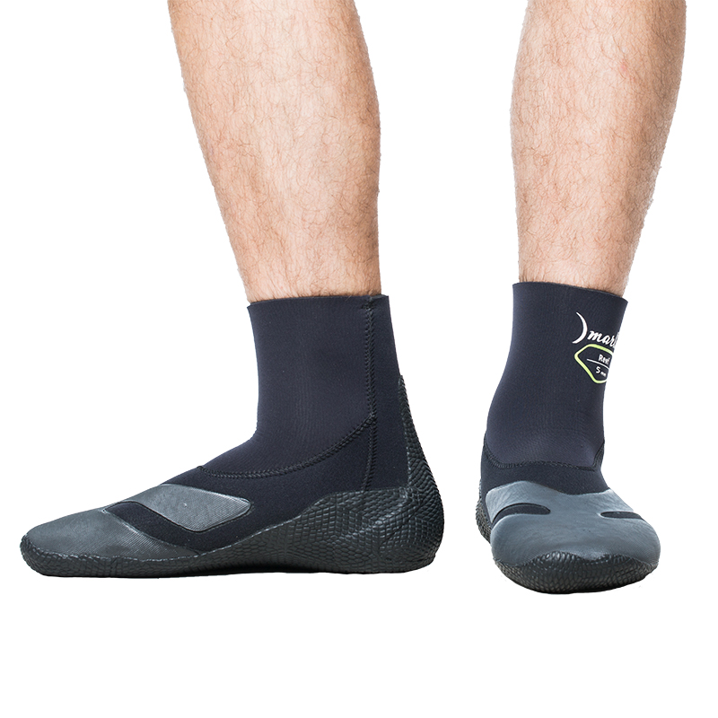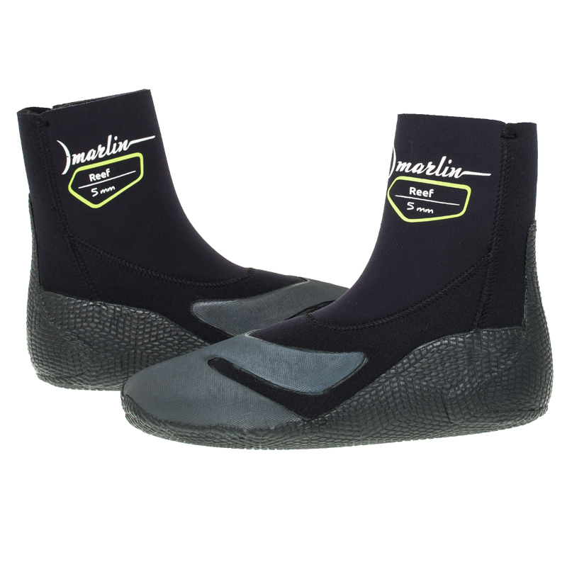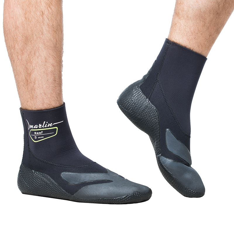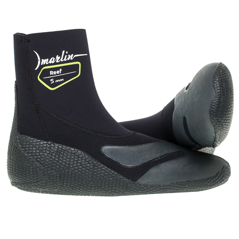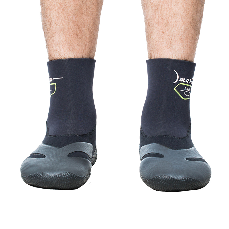 Боты Marlin Reef 2.0 5 мм - гибридная модель, совмещающая в себе высокую устойчивость к порезам и истиранию - от бот, компактность и удобство использования - от носков. Изготовлены из эластичного неоперена фирмы Шейко, имеют анатомический крой (правый, левый). Наружное и внутреннее покрытие – нейлон, на подъёме стопы вставка из неоспана - сверхмягкого материала. Резиновое покрытие подошвы имеет антискользящий протектор, который защитит ноги при длительных переходах по суше от прибрежных камней и других «особенностей» берега водоёма. Носки дополнительно защищены в области носка и пятки. Отличный выбор не только для подводной охоты, но и для водных видов спорта.