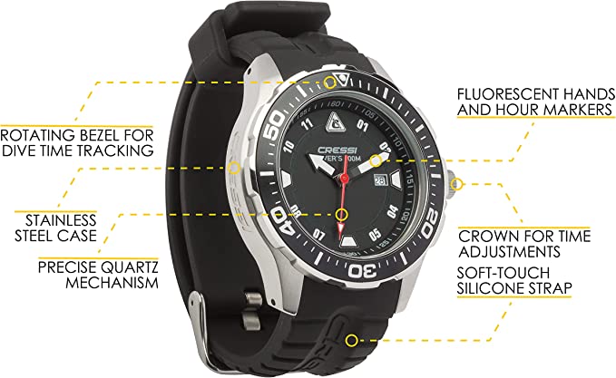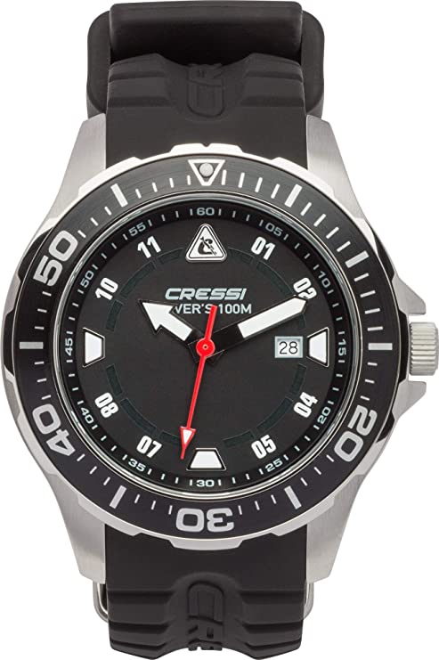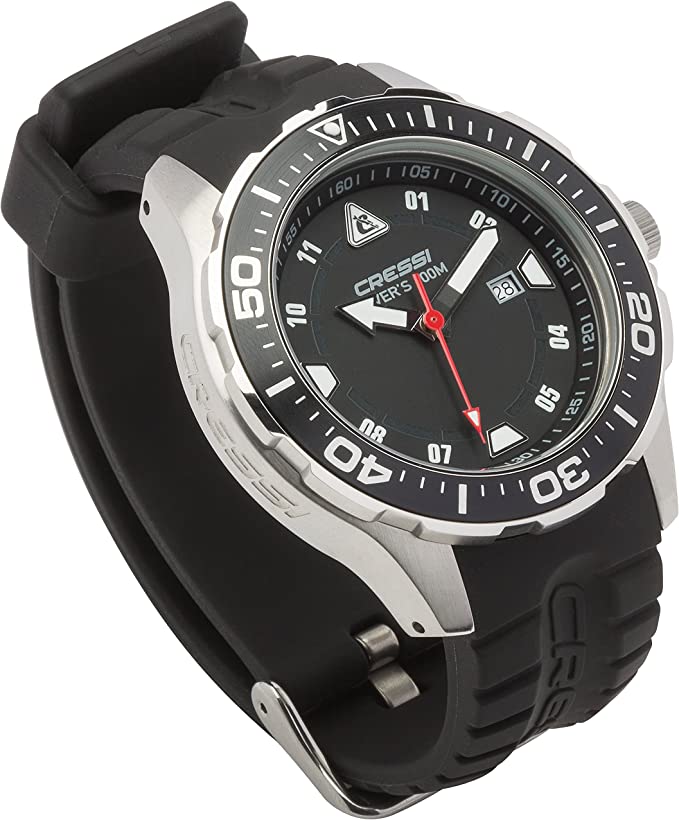 Часы Cressi MANTA WATCH 100m BLACK BLACK SILVER CASE для подводной охоты, купить в подводном магазине Водолаз.РФ
