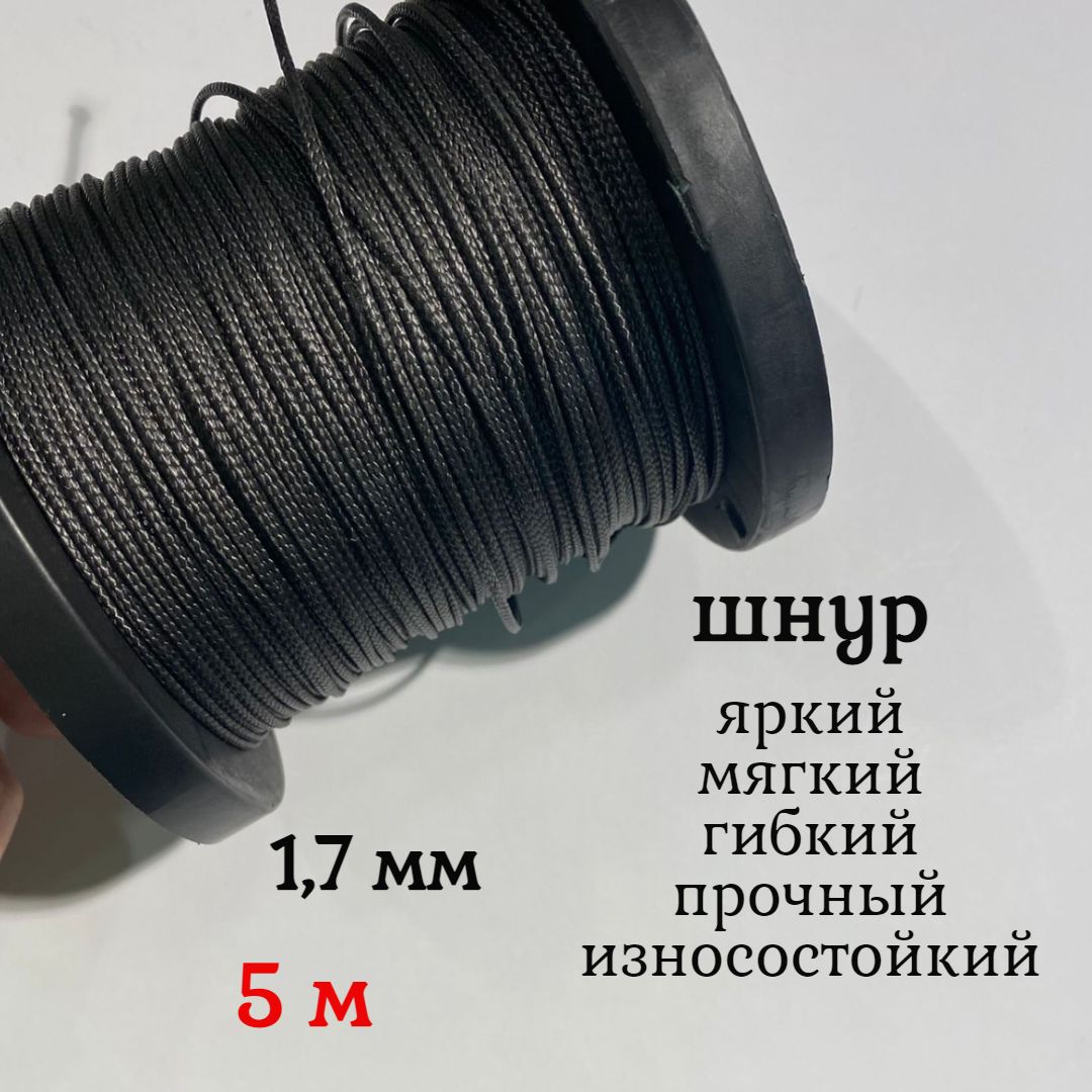 Капроновый шнур, яркий, сверхпрочный Dyneema, черный 1.7 мм, на разрыв 170 кг длина 5 метров.