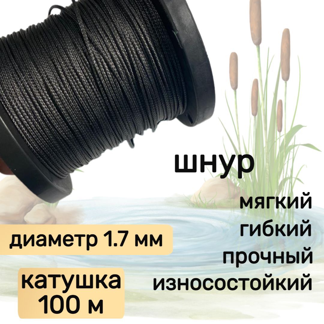Шнур для рыбалки плетеный DYNEEMA, высокопрочный, черный 1.7 мм 170 кг на разрыв Narwhal, катушка 100 метров