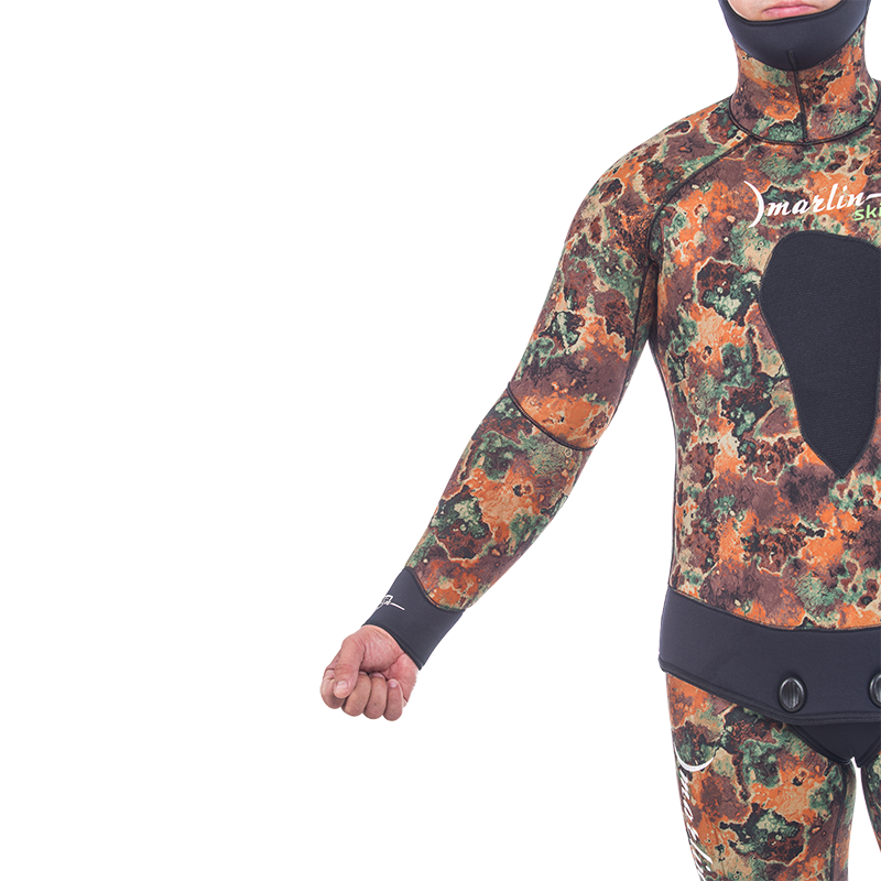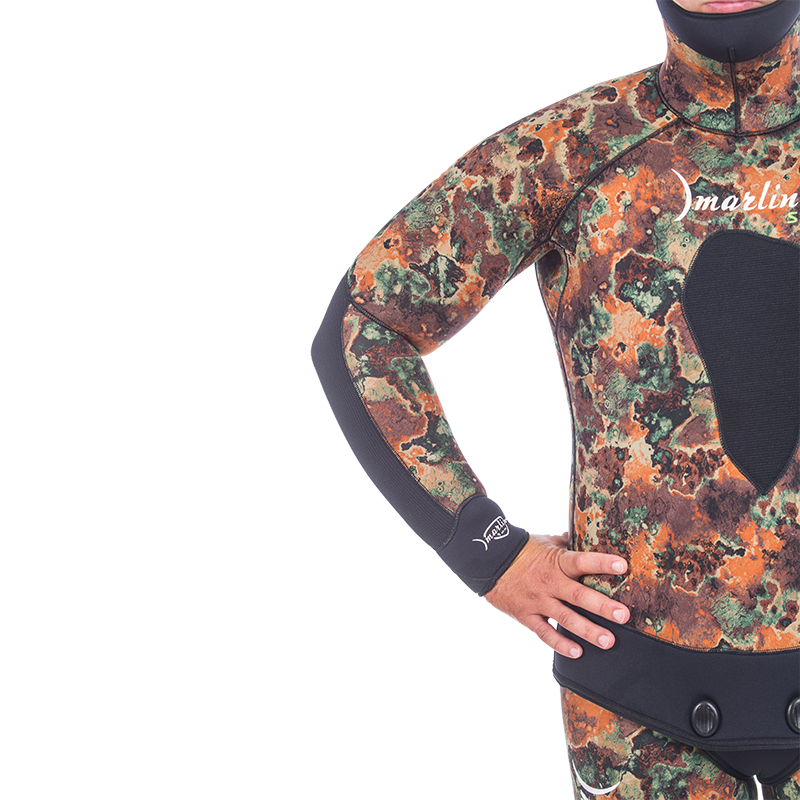 - мягкий эластичный неопрен;- неопрен дублирован сверхрастяжимым покрытием спейнграф;- камуфлированная окраска;- анатомический крой;- брюки типа Long Jonh;- рукав реглан;- обтюрация на рукавах, брюках и шлеме;- колени и локти защищены материалом duratex.Размерная таблица изделий TM Marlin