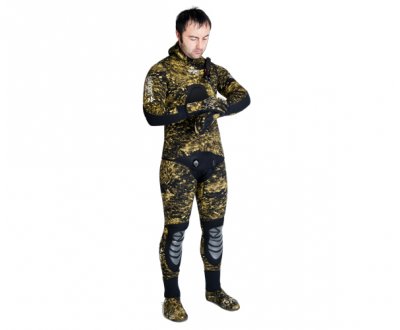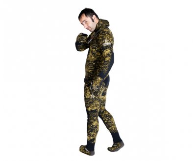Гидрокостюм для самых опытных и взыскательных подводных охотников. Полностью камуфлированный. Камуфляж – биоцифровой камуфляж RDEST 2.0. «Открытая пора» изнутри и камуфлированный нейлон снаружи.