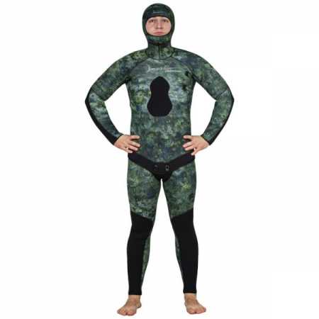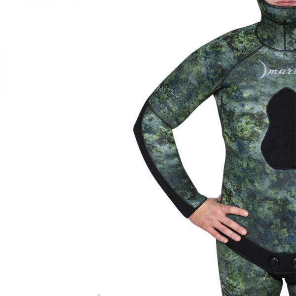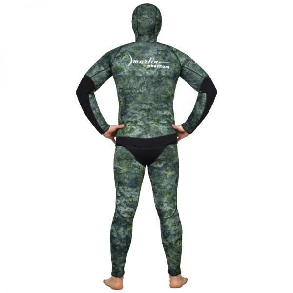 Гидрокостюм Marlin Phantom (Марлин Фантом) – гидрокостюм для подводной охоты, изготовленный из неопрена Nam Liong (Нам Лионг). Мягкий эластичный неопрен марки 3D (в моделях 5 и 7 мм), анатомический крой состоящий из 29 деталей обеспечивают комфорт при длительном использовании. Наружное покрытие – ультрастрейч, обладает повышенной эластичностью, внутренняя поверхность – открытая пора. Куртка имеет крой типа реглан, который увеличивает комфорт и создаёт максимальное прилегание гидрокостюма при эксплуатации. Для облегчения дыхания (на моделях 7, 9 и 10 мм) - майка комбинезона (Long John) выполнена из неопрена меньшей толщины. Материал duratex (дюратекс) защищает колени и локти костюма от преждевременного истирания.В гидрокостюме Marlin Phantom есть крепление для ножа (расположено на груди, слева).Упор для зарядки ружей, приклеен к костюму и прошит по периметру.Для самостоятельной подгонки длины гидрокостюма имеются специальные закрепки, расположенные на швах манжет куртки и брюк, а также на швах майки комбинезона. Гидрокостюм имеет «мягкие швы» благодаря проклейке специализированным клеем. Все края костюма прооверложены, что исключает надрыв ткани и увеличивает срок его эксплуатации.Отлично сочетается в комплекте с носками Marlin Anatomic Eco и перчатками Marlin Ultrastretch.Гидрокостюм может быть изготовлен из неопрена толщиной 5, 7, 9, 10 мм.Гидрокостюмы Marlin Phantom 5 мм производятся в цветах: moss, emerald.Доступные размеры: 44, 46, 48, 50 ,52, 54, 56, 58, 60.Гарантия на проклейку швов 1 год. Характеристики:- неопрен Nam Liong 3D;- камуфлированная окраска;- анатомический крой, состоит из 29 деталей;- брюки типа Long John (с лямками);- рукав типа реглан;- колени и локти защищены материалом duratex;- возможность самостоятельно подогнать длину костюма;- крепление для ножа.