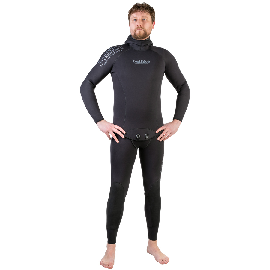 Особенность гидрокостюма Baltika - отсутствие жёсткой накладки на груди для упора арбалета. Большинство начинающих , а так же тех подводных охотников, кто использует гидрокостюмы 5 или 7 мм толщиной - пользуются пневматическим ружьём, которое не нужно упирать в грудь при зарядке. Потому накладка им и не нужна. Отсутствие жёсткой вставки в грудной области делает эту часть гидрокостюма мягче и эластичнее, поэтому глубокое дыхание в Baltika практически ничем не затрудняется. Это делает гидрокостюмы Baltika так же интересными и для фридайверов.