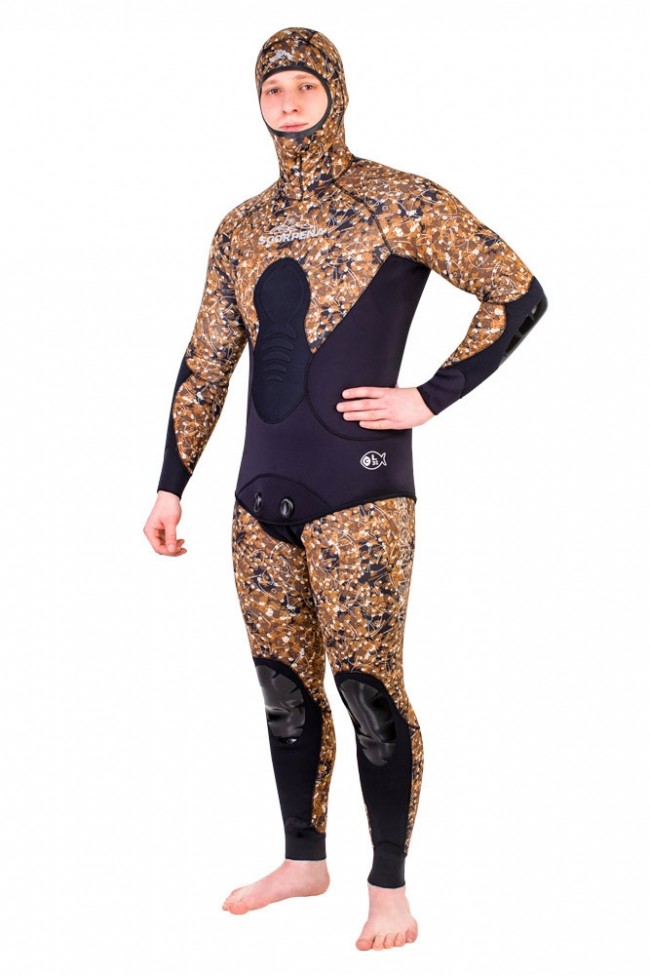 Манжеты рукавов и штанин и лицевые обтюраторы сделаны из более тонкого неопрена (5.5 мм – на 7 мм костюме) для большей эластичности. Верхняя часть штанов и шейные детали также утоньшены, чтобы облегчать движения охотника и не мешать глубокому дыханию и движениям.