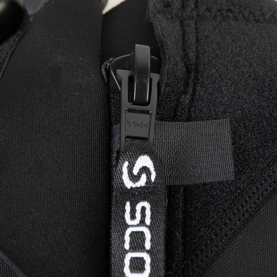 Костюм застёгивается на расположенную вертикально по спине пластиковую молнию, которая устойчива к коррозии в солёной морской воде. Для удобства застёгивания бегунок молнии оснащён длинной петлёй с рельефной поверхностью. Это облегчает самостоятельное застёгивание и расстёгивание костюма. Широкая планка под молнией препятствует попаданию лишней воды под костюм.