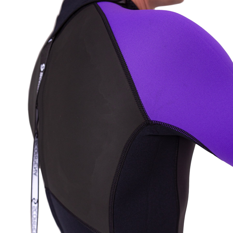 Для быстрого скатывания воды и предохранения переохлаждения при ветреной погоде основные панели, на груди и спине, выполнены из 3 мм высокоэластичного неопрена с несмачиваемым покрытием Meshskin снаружи и приятным к телу тканевым покрытием – изнутри.