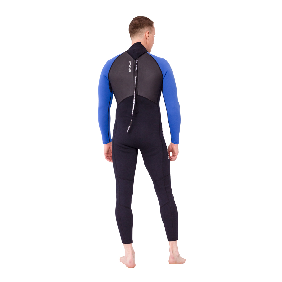 Нижние передние и задние части гидрокостюма и панели коленей изготовлены из более плотного 3мм неопрена и защищены износостойким текстильным покрытием с обеих сторон. Боковые же части гидрокостюма, рукава, воротничок, штанины ниже колен и промежность выполнены из более тонкого неопрена 2 мм для большей эластичности чтобы костюм плотнее облегал фигуру и сохранял тепло, не сковывая при этом движений.