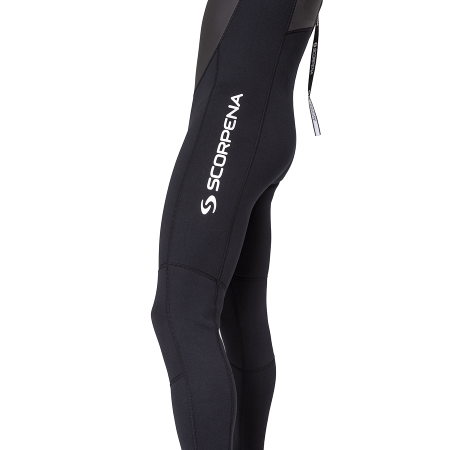 Нижние передние и задние части гидрокостюма и панели коленей изготовлены из более плотного 3мм неопрена и защищены износостойким текстильным покрытием с обеих сторон. Боковые же части гидрокостюма, рукава, воротничок, штанины ниже колен и промежность выполнены из более тонкого неопрена 2 мм для большей эластичности чтобы костюм плотнее облегал фигуру и сохранял тепло, не сковывая при этом движений.