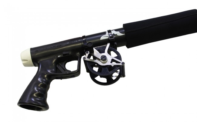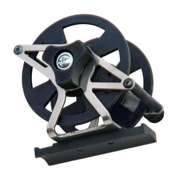 Катушка для пневматического ружья SCORPENA c вертикальным креплением относительно ружья. Корпус катушки изготовлен из прочного сплава алюминия. Диаметр шпули, основной части катушки, на которую наматывается линь, 70 мм, позволяет разместить на ней достаточную длину линя. Крепление катушки имеет прорези для двух хомутов, которыми катушка крепится к основанию ружья. Благодаря такому универсальному креплению, катушку можно фиксировать на стволах ружей, независимо от их диаметра. Для регулировки скорости вращения катушки имеется фрикцион.