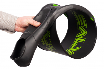 Еще мы придали калоше специальную форму с различной толщиной материала, чтобы получить значительную механическую прочность в сочетании с легкостью и жесткостью: мы фактически объединили мягкий верх с жесткой подошвой, в одной пресс-форме. Что в Итоге как раз сделало калошу прочной, легкой и одновременно твердой внизу и мягкой вверху и все это гарантирует отличную передачу мощности от охотника в лопасти, а также комфорт для наших ног.