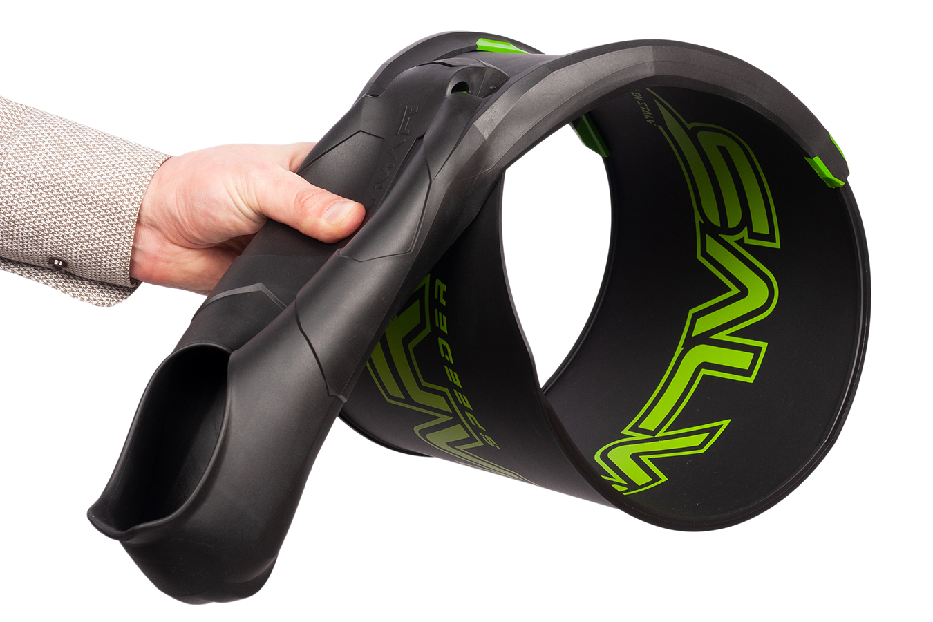 Представляем Вам совершенно новые ласты SPEEDER от компании Salvimar. Это без сомнения проект, над которым команде Salvimar пришлось работать дольше всего. Долгих 5 лет ушло на создание этих инновационных и даже, позволим себе сказать революционных ласт для подводной охоты и фридайвинга. В чем же основные особенности и те самые инновации? В первую очередь нужно понимать, что при создании этой модели компания Salvimar ставила перед собой сложную задачу, выполнение которой может показаться вообще не осуществимым: Сделать ласты с пластиковой лопастью, которые по своим характеристикам не будут уступать карбоновым. И по результатам двух лет испытаний в реальных условиях и доработок – можем заявить Вам, что мы добились поставленной цели. В нашей работе, мы уделили особое внимание взаимодействию, между двумя основными компонентами ласты калошей и лопастью, а именно их соединению, Что позволило нам улучшить характеристики ласт в разы. Калоша это элемент, который соединяет подводного охотника с лопастью и именно через это соединение передается кинетическая энергия в лопасть, которая преобразуется в движение в толще воды. Соединение обеспечивается усами калоши, которые крепят лопасть. И для максимальной эффективности передачи энергии гребка от калоши к лопасти мы сделали усы жесткими и идущими по всей длине калоши не с боков, как это делается обычно, а снизу - на стопе. При таком соединении вся энергия без потерь передается в лопасть, а следовательно мы плывем быстрее при тех же затратах сил – соответственно меньше тратим кислород, что очень важно при нырянии на задержке дыхания. Помимо этого данная инновация позволяет нам минимизировать риск заваливания лопастей набок при гребке, что делает гребок еще более эффективным. Калоши оснащены вставкой из твёрдого пластика для придания жесткости при гребке. То есть вся стопа калоши это несгибаемый материал. Также для выполнения нашей сложной задачи по созданию ласт с пластиковой лопастью не уступающих карбоновым мы оснастили ласты SPEEDER специальной лопастью с диверсифицированной толщиной материала. Толщина в основании лопасти составляет 3,5 мм., а в конце лопасти всего 1,8 мм. Это позволяет добиться максимальной эффективности работы лопасти. Конечно, и сам материал лопасти не остался без изменений. Казалось бы, есть пластик и карбон, ну еще и так называемый «сэндвич», но на самом деле далеко не все так просто. Пластик, или правильнее сказать полипропилен, насчитывает огромное количество видов, которые могут разительно отличаться по своим свойствам друг от друга. Чтобы подобрать реально самый эффективный состав полипропилена для лопастей наших новых ласт, нашей команде разработчиков пришлось сделать более 50-и образцов из разного состава полипропилена и протестировать их все. В результате выбран тот состав, который показал наибольшую эффективность. (Кстати сказать, на момент запуска модели в промышленное производство в конце 2021 года – это сыграло с нами злую шутку, так как нужного состава пластика нигде не было в наличии.) Еще мы придали калоше специальную форму с различной толщиной материала, чтобы получить значительную механическую прочность в сочетании с легкостью и жесткостью: мы фактически объединили мягкий верх с жесткой подошвой, в одной пресс-форме. Что в Итоге как раз сделало калошу проч
