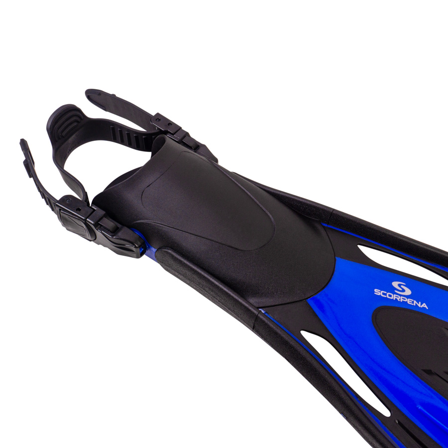 Ласты Scorpena Tahiti оснащены широким резиновым ремешком, который комфортно фиксирует ногу в ластах. Ремешок крепится к калоше при помощи крупных пластиковых пряжек. Пряжки можно быстро расстегнуть, чтобы снять или надеть ласту на ногу. Также Вы можете легко отрегулировать длину ремешка для комфортной фиксации ласты на ноге. Пряжки свободно поворачиваются на своём креплении вверх и вниз, что так же способствует комфортному плаванию в Scorpena Tahiti. Система креплений на этих ластах допускает замену штатного резинового ремешка на ремешок пружинный.
