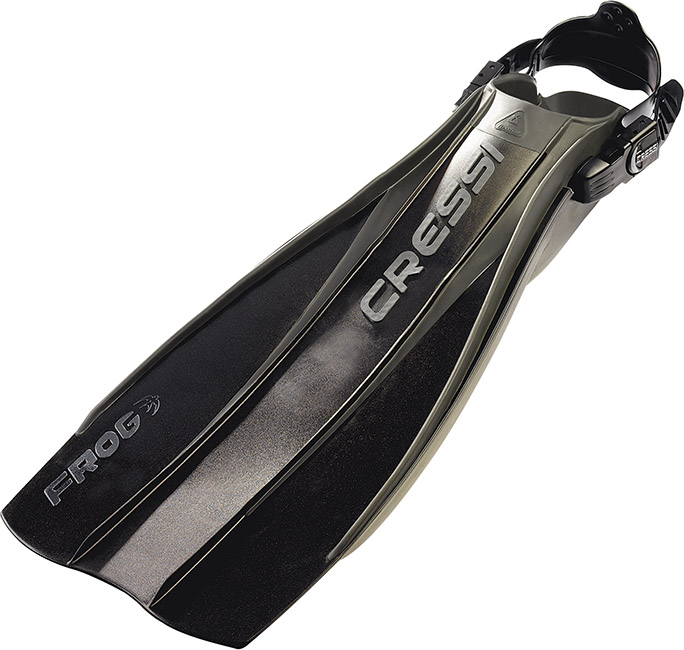Калоша разработана с помощью компьютерных технологий, чрезвычайно комфортна и ее форма обеспечивает точную передачу гребка ноги к лопасти ласты. Frog тяжелее, чем идентичные модели Cressi более новых версий.