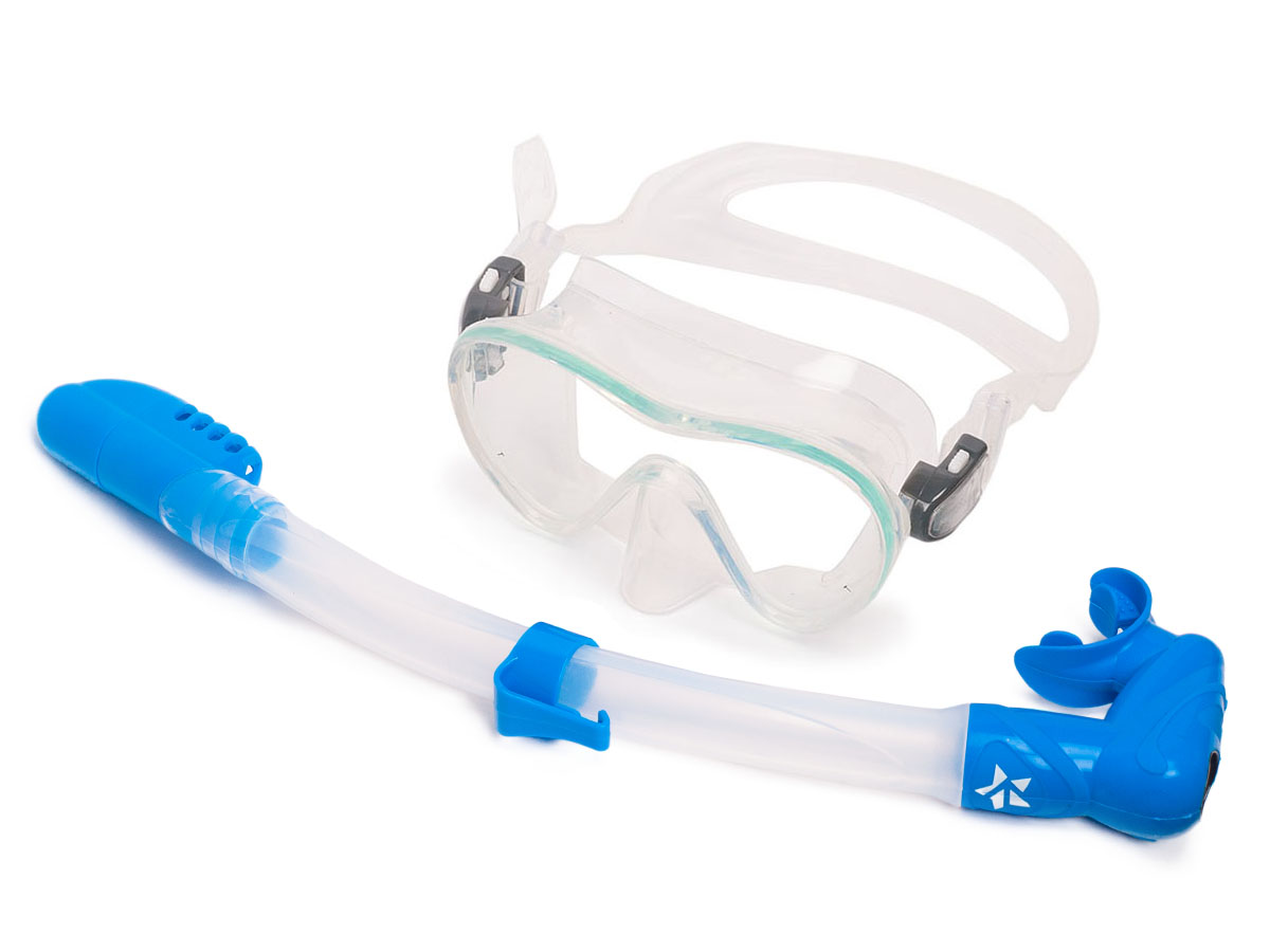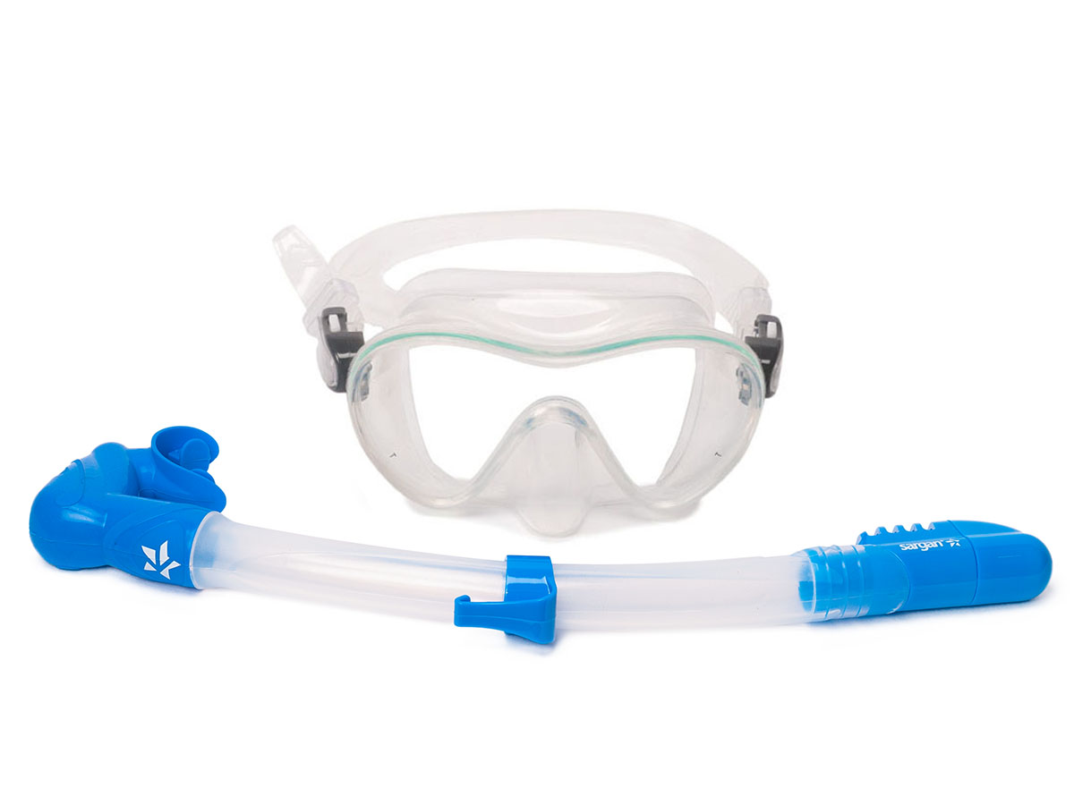 Комплект Сарган Агидель прозрачный-синий-морской  (маска+трубка) для подводной охоты, купить в подводном магазине Водолаз.РФ