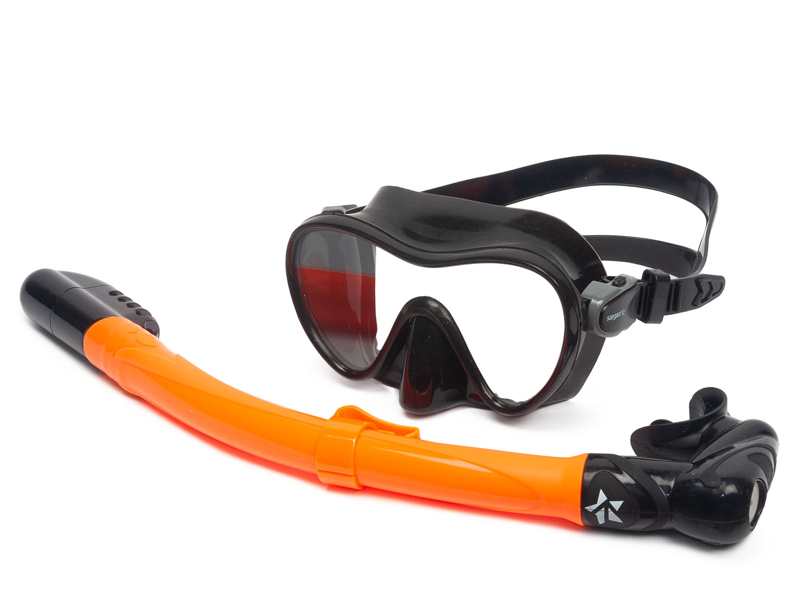 Комплект Сарган Агидель BLACK ! TYPE (маска+трубка) черный/оранжевый для подводной охоты, купить в подводном магазине Водолаз.РФ