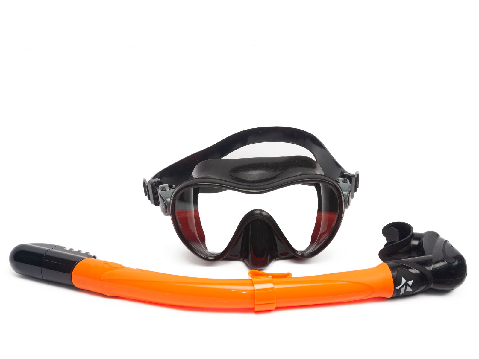 Комплект Сарган Агидель BLACK ! TYPE (маска+трубка) черный/оранжевый, по цене 2548.3 руб, купить в интернет-магазине подводной охоты Водолаз.РФ в Москве. -
