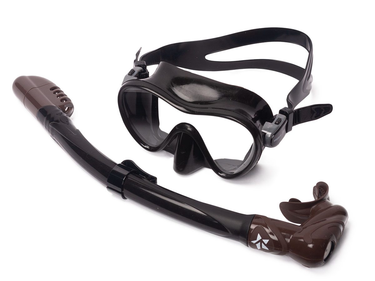 Комплект Сарган Агидель BLACK ! TYPE (маска+трубка) черно-коричневый, по цене 2633.3 руб, купить в интернет-магазине подводной охоты Водолаз.РФ в Москве. -