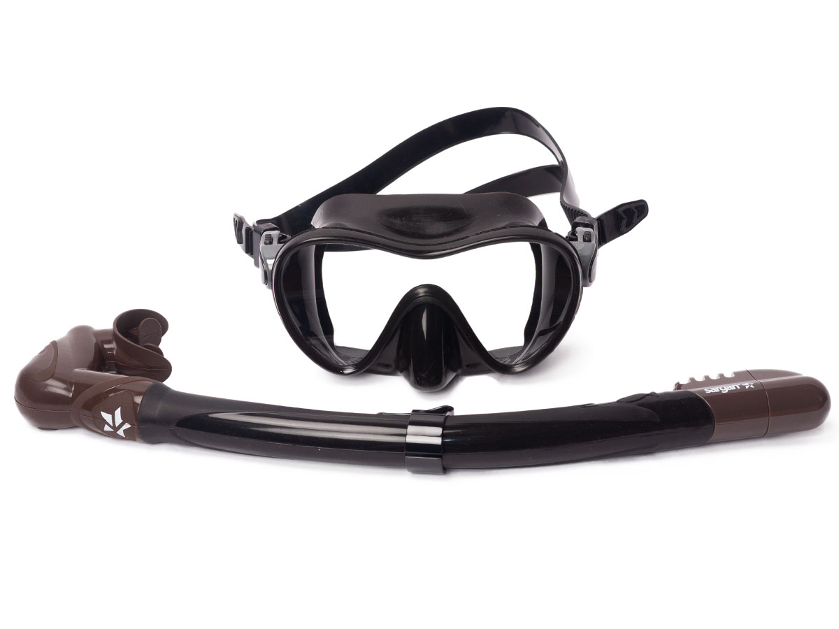 Комплект Сарган Агидель BLACK ! TYPE (маска+трубка) черно-коричневый для подводной охоты, купить в подводном магазине Водолаз.РФ