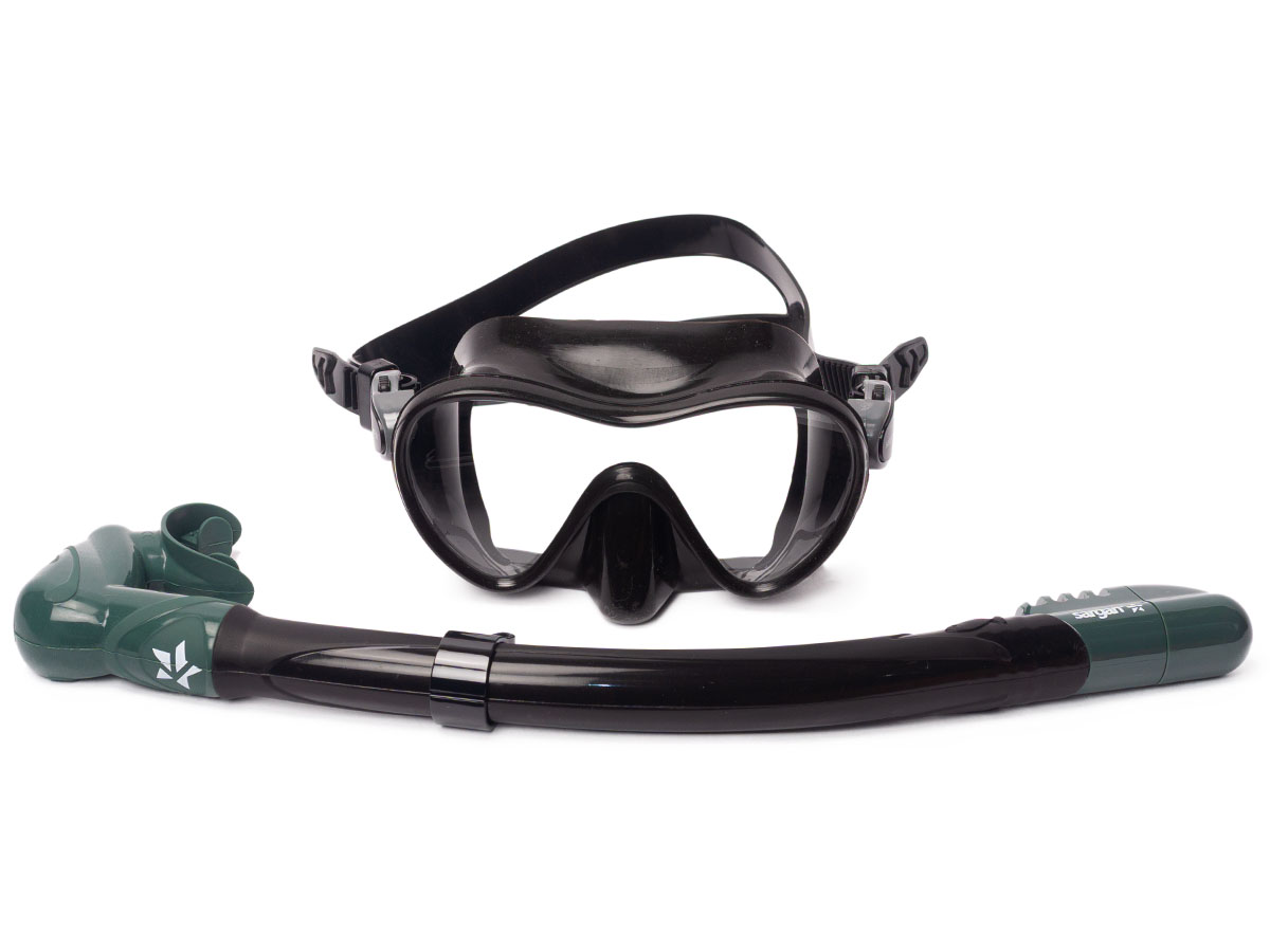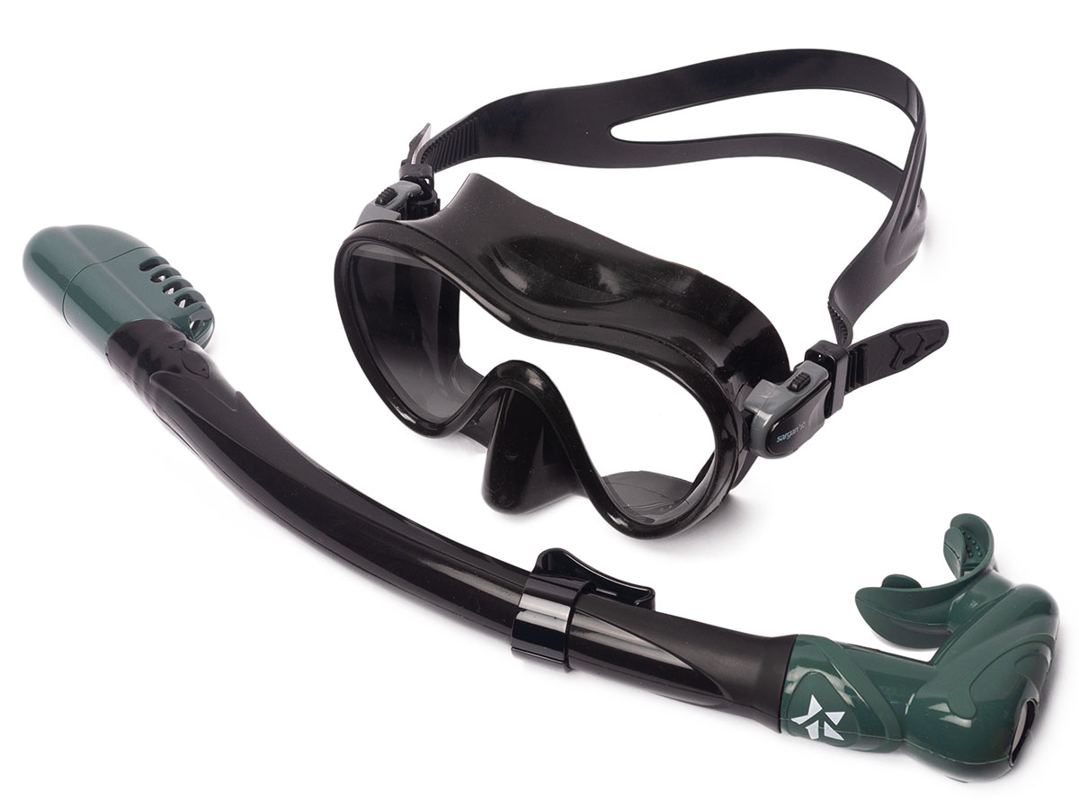Комплект Сарган Агидель BLACK ! TYPE (маска+трубка) черный/темно-зеленый для подводной охоты, купить в подводном магазине Водолаз.РФ