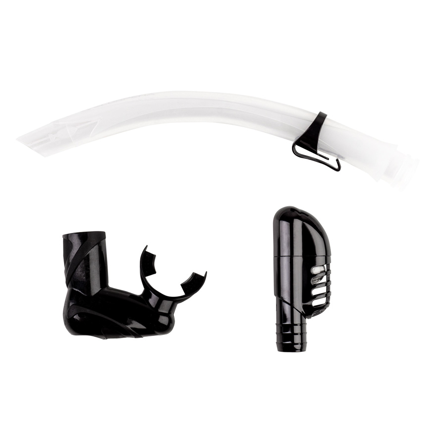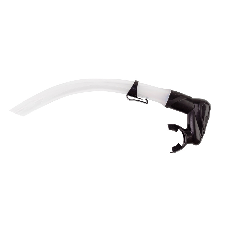 Трубка оснащена сухим верхним клапаном, который предотвращает попадание воды в трубку при погружении под воду. В нижнем сегменте трубки расположена дренажная камера с клапаном, через который вода легко удаляется из трубки. Трубка крепится на ремешок маски удобным зажимом.<br>