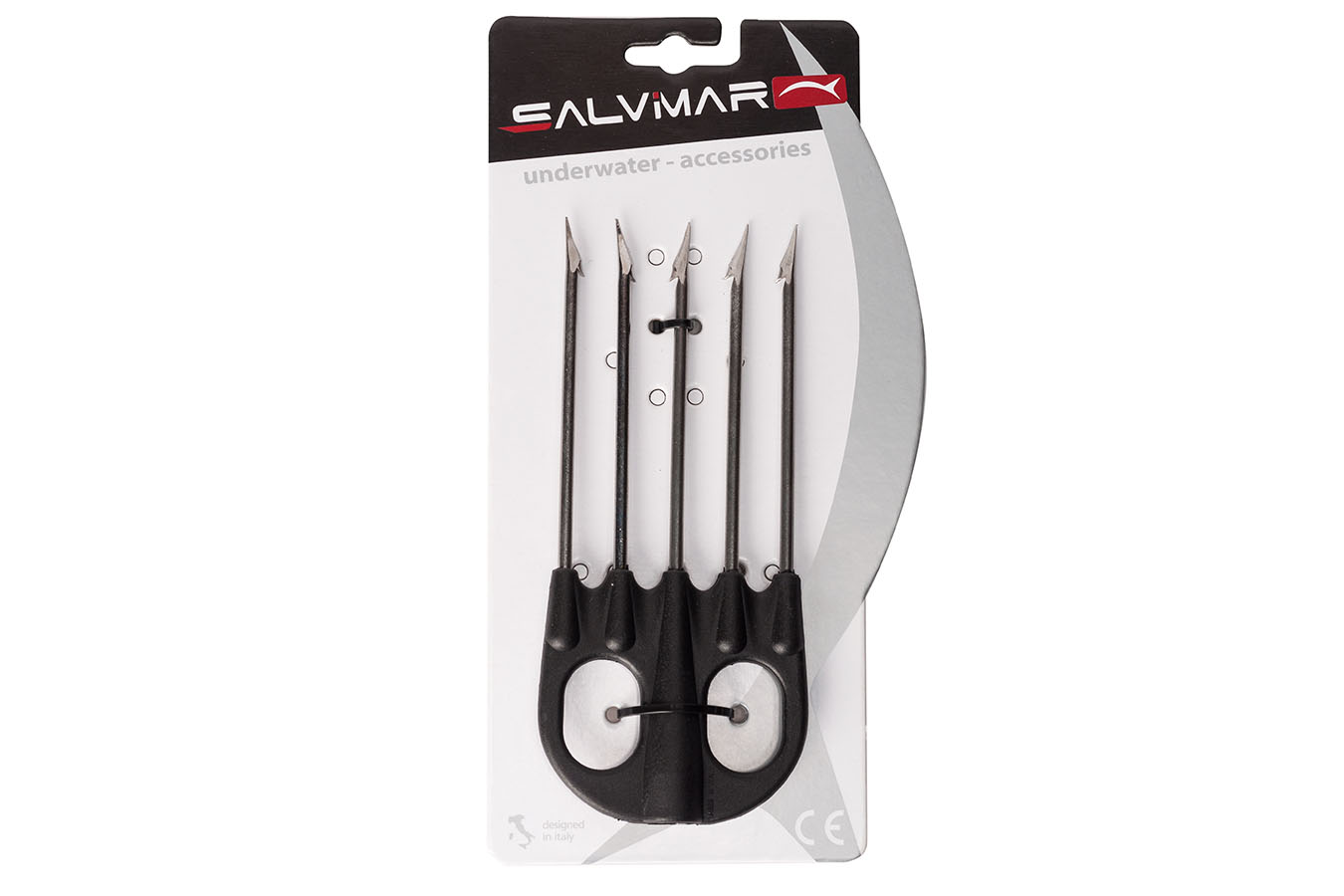 Наконечник гарпуна подводного ружья Salvimar Jet, 5 зубьев, корпус из усиленного нейлона. Прут: закаленная и оцинкованная сталь диаметр 4 мм. Подходит для охоты со слингом на донную рыбу, папа камбалы или скорпены и т.п.