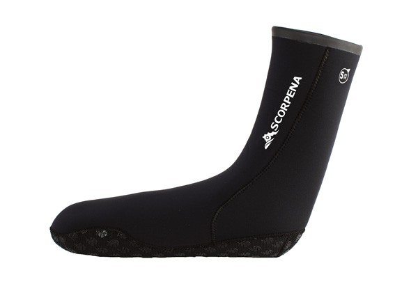 Носки – незаменимый атрибут экипировки подводного охотника. Они защищают ноги в воде и на суше, оберегая их от повреждений о ветки и камни, сохраняют тепло во время охоты, не позволяя ногам замерзнуть, а также позволяют удобно крепить ласты к ноге, уберегая ноги от натирания. Носки SCORPENA C созданы для тех, кто не привык к компромиссам, и всегда выбирает самое лучшее и качественное. Они выполнены из неопрена, снаружи покрытым нейлоном, а внутри неопрен - открытая пора, благодаря чему носки буквально присасывается к коже, и, вместе с обтюратором из гладкого неопрена, практически исключает циркуляцию воды внутри носков. А благодаря суперэластичности неопрена, носки отлично тянутся и, в сочетании с великолепным кроем, будут отлично сидеть на ноге! Особый анатомический крой учитывает положение ступни в самом рабочем положении – при гребке. Подошва дополнительно усилена специальным покрытием, увеличивающим срок службы носков. Кроме того, на подошву нанесено специальное антифрикционное покрытие в виде лаконичного орнамента. Оно увеличивает сцепление с поверхностью и позволяет безопасно передвигаться на самом непредсказуемом рельефе на суше.
