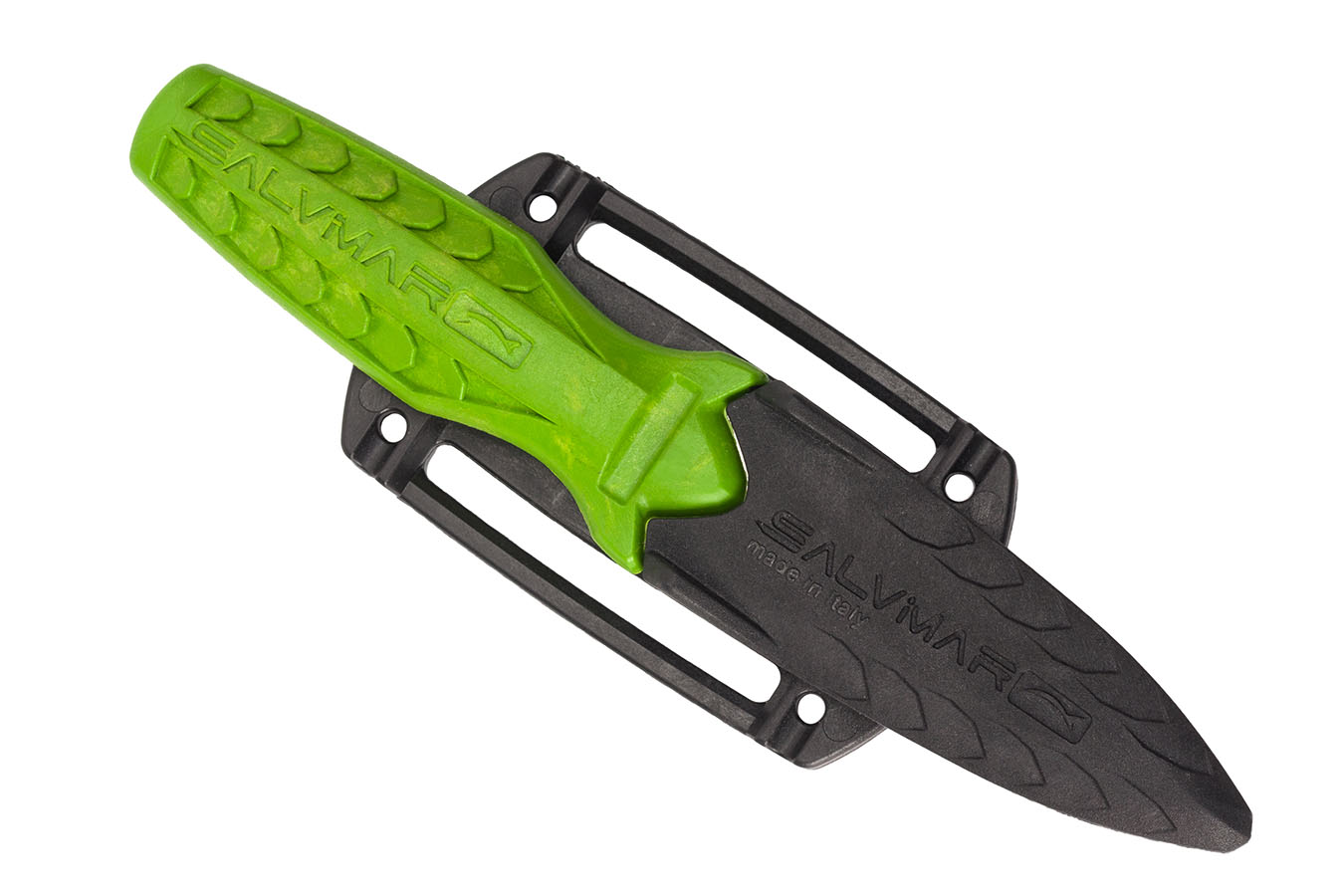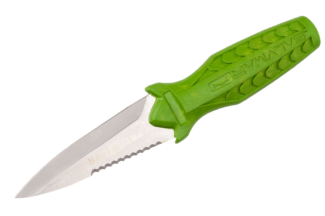 Цвет рукояти ножа salvimar Predathor ярко зеленый. Это очень удобно, потому что его хорошо видно в воде, особенно это важно ночью и в условиях плохой видимости.