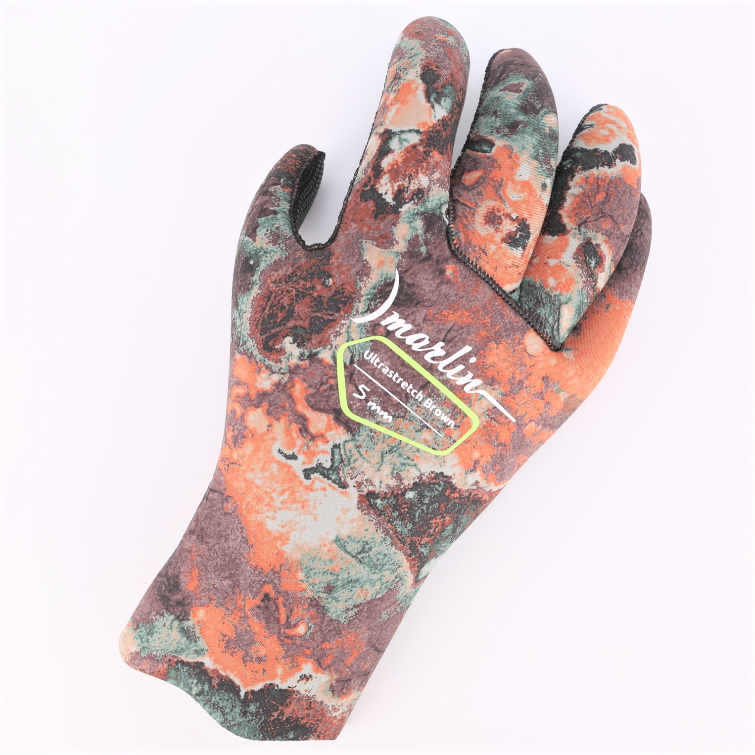 Перчатки Marlin Ultrastretch Brown (Марлин Ультрастреч браун) сделаны на предприятии Шейко из сверхрастяжимого неопрена толщиной 5 мм. Имеют коричневый камуфлированный окрас. Перчатки обеспечивают максимальный комфорт и облегание при эксплуатации. Ладони покрыты резиновым протектором для улучшения хвата и увеличению стойкости к истиранию.
