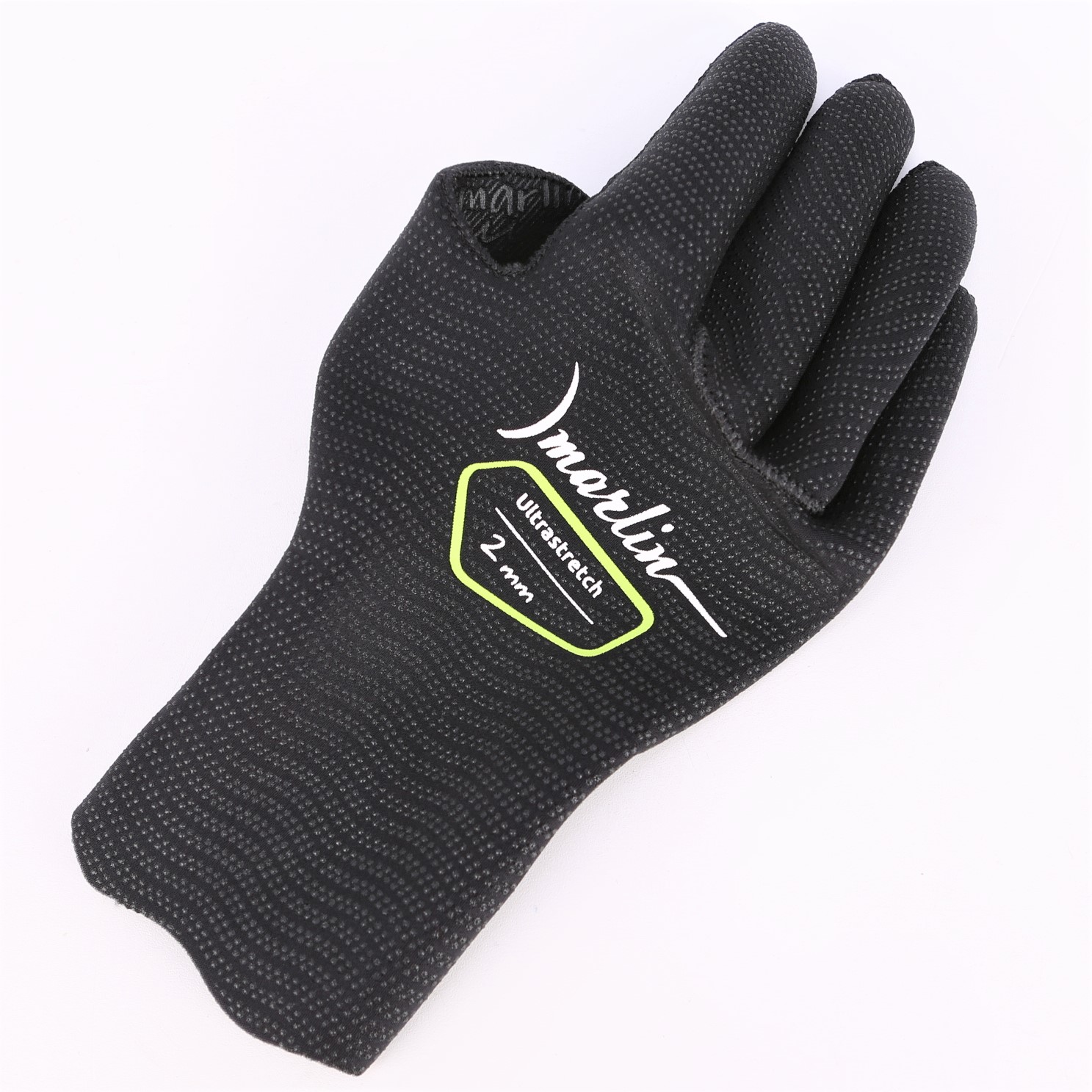 Перчатки Marlin Ultrastretch (Марлин Ультрастреч) сделаны из эластичного неопрена фирмы Шейко, покрытого сверхрастяжимым нейлоном ultrastretch. Анатомический крой обеспечивает плотное, но комфортное обжимание кисти, сохраняя её чувствительность при эксплуатации, предотвращая при этом циркуляцию воды и сберегая тепло. Нейлон внутри даёт возможность надевать перчатку на сухую кисть (без мыльного раствора). Прорезиненная поверхность ладоней позволяет уверенно удерживать предметы в воде.