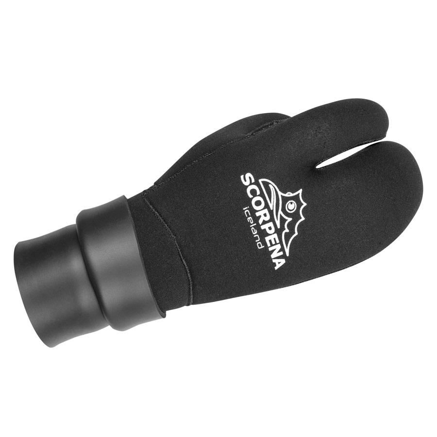 SCORPENA Iceland - трёхпалые рукавицы с двойной манжетой, предназначенные для плавания в очень холодной воде. Расположение в рукавице трёх пальцев вместе существенно сокращает теплопотери в сравнении с пятипалой перчаткой. Имитация анатомически естественного полусогнутого положения кисти уменьшает нагрузку на мышцы и увеличивает комфортное время пребывания под водой.