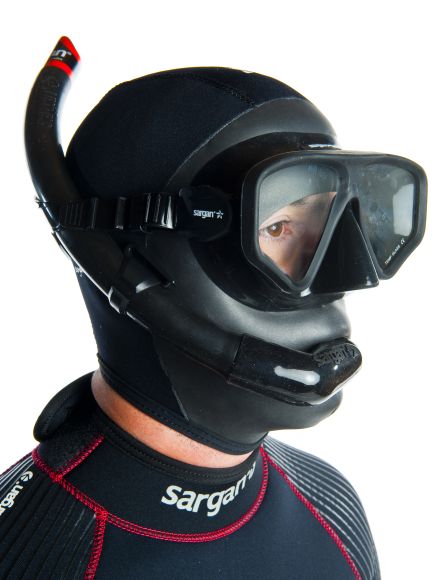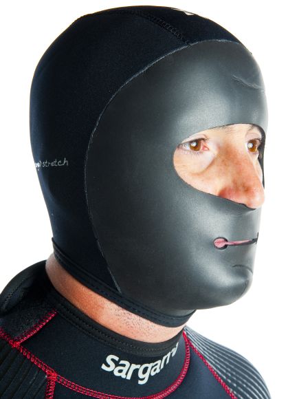 Одевается под шлем гидрокостюма, маска накладывается поверх резинового обтюратора подшлемника.При необходимости, самостоятельно подрезается отверстие для глаз. Оригинальный ротовой обтюратор минимизирует площадь контакта незащищенной неопреном кожи и холодной воды.