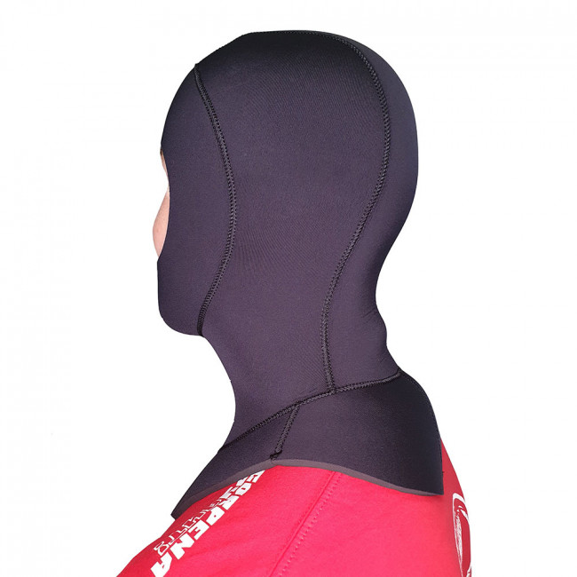 Шлем Scorpena изготовлен по оригинальным анатомическим лекалам из мягкого и эластичного неопрена и лишен грубых швов на внутренней поверхности – для предотвращения пережимания и натирания чувствительных мест лица и шеи. Широкая лицевая манжета имеет гладкую внутреннюю поверхность по всей окружности – для мягкого, но плотного прилегания к лицу и предотвращения проникновения воды к голове и шее. Снизу шлем переходит в широкую манишку, которая благодаря своим размерам, а также внутренней гладкой поверхности smoothskin отлично прилегает к верхней части торса и предотвращает затекание воды к шее снизу.