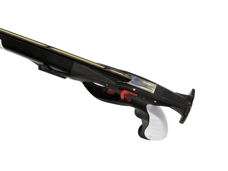 Ружье Scorpena C создано для продвинутых подводных охотников. Многие хотят иметь возможность оперативно менять тип оголовья. Это могут быть и охотники, которые ранее охотились с оголовьем закрытого типа, а теперь хотят попробовать преимущества открытого типа оголовья, но так, чтобы иметь возможность вернуться к привычной им "закрытой голове". Также это могут охотники, которые едут в отпуск на и хотят продолжать пользоваться своим привычным и пристрелянным ружьём в другой типе водоёмов с минимальными изменениями в нём. В 2017 году мы модифицировали Scorpena C2: теперь это ружьё оснащено универсальным оголовьем. При помощи несложной переделки, которую можно провести в полевых условиях, вы сможете охотиться как с оголовьем открытого, так и закрытого типа, без необходимости приобретать отдельное ружьё. Также данную модель могут выбрать те начинающие подводные охотники, которые ещё не определили свои предпочтения в выборе оголовья и хотят протестировать в одинаковых условиях оба варианта и затем остановиться на более удобном для них типе ружья. Ствол этой модели ружья выполнен диаметром 28 мм, по всей длине проходит алюминиевая интегрированная направляющая для гарпуна, придающая необходимую точность выстрелу и дополнительную прочность на изгиб при заряжании с мощными тягами. Ружье оборудовано современным картриджным спусковым механизмом с высоким запасом прочности. Анатомическая рукоятка с обрезиненной задней частью позволяет удобно и надежно удерживать арбалет под водой. Ружье оснащено упором в грудь для удобства при заряжании. Кольцевая тяга сделана из двухкомпонентной латексной резины диаметром 18 мм. Зацеп - составной шарнирный, для тяг с резьбовыми втулками. В комплект входит гарпун 6,5 мм из высокопрочной коррозионно-устойчивой стали 17-4 PH с зацепами в виде пропилов, а также длинным противосходным флажком, направленным вниз. В комплекте к ружью прилагается монолинь черного цвета с двумя зажимами и амортизатором. Для оснащения ружья катушкой, на ружье установлен крепеж типа «ласточкин хвост»