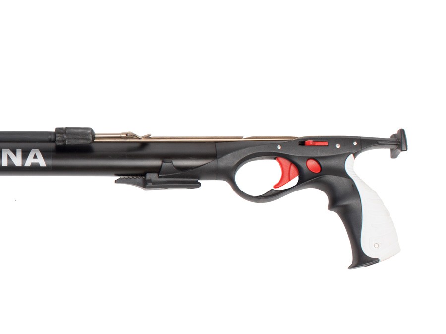 Ружье Scorpena C создано для продвинутых подводных охотников. Многие хотят иметь возможность оперативно менять тип оголовья. Это могут быть и охотники, которые ранее охотились с оголовьем закрытого типа, а теперь хотят попробовать преимущества открытого типа оголовья, но так, чтобы иметь возможность вернуться к привычной им "закрытой голове". Также это могут охотники, которые едут в отпуск на и хотят продолжать пользоваться своим привычным и пристрелянным ружьём в другой типе водоёмов с минимальными изменениями в нём. В 2017 году мы модифицировали Scorpena C2: теперь это ружьё оснащено универсальным оголовьем. При помощи несложной переделки, которую можно провести в полевых условиях, вы сможете охотиться как с оголовьем открытого, так и закрытого типа, без необходимости приобретать отдельное ружьё. Также данную модель могут выбрать те начинающие подводные охотники, которые ещё не определили свои предпочтения в выборе оголовья и хотят протестировать в одинаковых условиях оба варианта и затем остановиться на более удобном для них типе ружья. Ствол этой модели ружья выполнен диаметром 28 мм, по всей длине проходит алюминиевая интегрированная направляющая для гарпуна, придающая необходимую точность выстрелу и дополнительную прочность на изгиб при заряжании с мощными тягами. Ружье оборудовано современным картриджным спусковым механизмом с высоким запасом прочности. Анатомическая рукоятка с обрезиненной задней частью позволяет удобно и надежно удерживать арбалет под водой. Ружье оснащено упором в грудь для удобства при заряжании. Кольцевая тяга сделана из двухкомпонентной латексной резины диаметром 18 мм. Зацеп - составной шарнирный, для тяг с резьбовыми втулками. В комплект входит гарпун 6,5 мм из высокопрочной коррозионно-устойчивой стали 17-4 PH с зацепами в виде пропилов, а также длинным противосходным флажком, направленным вниз. В комплекте к ружью прилагается монолинь черного цвета с двумя зажимами и амортизатором. Для оснащения ружья катушкой, на ружье установлен крепеж типа «ласточкин хвост»