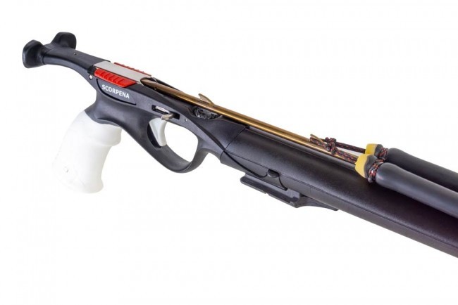 Ружьё-арбалет Scorpena D2 это немного модернизированное ружьё Scorpena D: - размерный ряд увеличен вдвое: к трём имеющимся ранее длинам - 75, 95 и 105 см теперь появилось ещё три дополнительные длины - 85 см, 115 и 125 см. - спусковой крючок теперь изготавливается из пластика контрастного белого цвета, кнопка-ползунок предохранителя - ярко-красный, а язычок линесбрасывателя - металлический. - зацеп Dyneema крепится на тяге не с помощью алюминиевых втулок, а через верёвочные петли из Dyneema. А в целом, этот арбалет, по прежнему – для самых требовательных подводных охотников. Ружье оснащено оголовьем открытого типа, алюминиевым стволом с полиуретановым внешним корпусом, который уменьшает гидродинамическое сопротивление при боковых перемещениях ружья, формирует направляющую для гарпуна, делает беззвучным выстрел и повышает общую плавучесть ружья. Эргономичная рукоятка с резиновой накладкой перекочевала из спортивных моделей пистолетов. При необходимости эта накладка может быть легко заменена на стандартную рукоятку, которая также хорошо подходит для тех охотников у которых ведущая рука - левая. Ружье оснащено длинным упором для удобства при заряжании. Кольцевая тяга из двухкомпонентной натуральной латексной резины диаметром 18 мм оснащена веревочным зацепом DYNEEMA толщиной 2 мм. Для упрощения замены зацепа в тяги вмонтированы верёвочные петли для привязки DYNEEMA. В комплект входит гарпун 6,5 мм из высокопрочной мартенситно-стареющей коррозионно-устойчивой стали 17-4 PH с зацепами типа «акулий плавник», а также противосходным флажком, направленным вниз. Ружье оснащено спусковым механизмом с многократным запасом прочности. При необходимости на ружье можно установить катушку. Тесты роллергана SCORPENA X и арбалета SCORPENA D Читать статью Об атлантической охоте и ощущениях от охоты с ружьем SCORPENA D на нашем сайте Технические характеристики арбалета Scorpena D2 Ствол Ø 28 мм; алюминиевый баррель с полиуретановым внешним корпусом Направляющая Есть по всей длине ствола Оголовье Открытое Гарпун Ø 6,5 мм; сталь 17-4PH; sharkfins Наконечник Несъемный; 1 флажок Тяги Ø 17,5 мм; кольцевая Возможность установки дополнительной тяги Да Зацеп Веревочный dyneema Упор Есть Крепление катушки Есть крепеж типа "ласточкин хвост" Линесброс Активный, справа Предохранитель Есть, для обоих рук Регулировка чувствительности (холостого хода) курка Есть