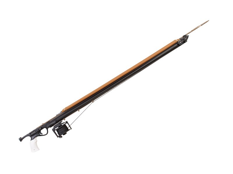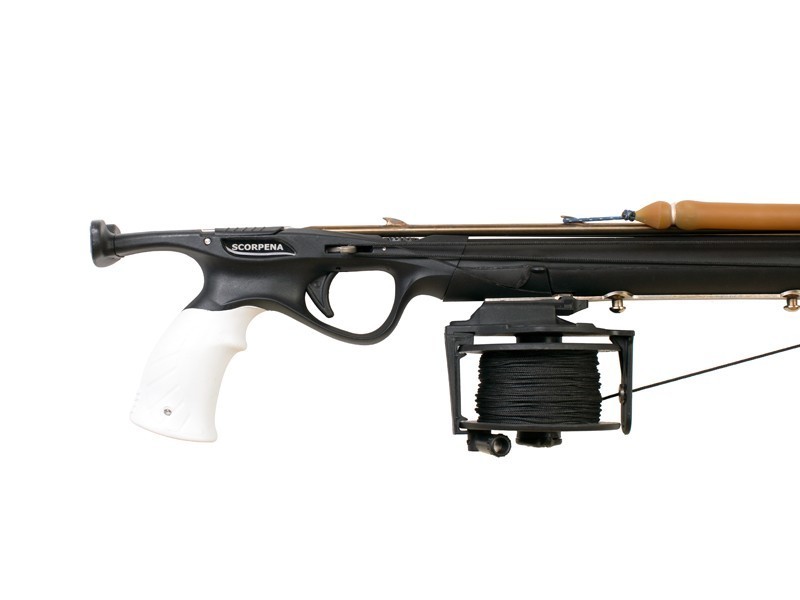 Супермощный и дальнобойный арбалет от SCORPENA. За счет использования оголовья с роликами, тяги расположены с обеих сторон ружья, и, благодаря этому, их рабочая длина удваивается, что позволяет многократно усилить мощность выстрела без увеличения длины ствола. На ружье установлены двухкомпонентные латексные тяги диаметром 20 мм. В комплект также входит гарпун 6,5 мм с зацепами типа «акулий плавник» из высокопрочной коррозионно-стойкой стали 17-4 PH, с обтекателем. Расположение флажка внизу гарпуна делает выстрел более точным, поскольку уменьшается влияние гравитации. Ружье обладает металлическим спусковым крючком и линесбрасывателем, а также суперпрочным зацепом Dyneema. Предохранитель расположен таким образом, что его одинаково удобно использовать при стрельбе как правой, так и левой рукой. Кроме того, на этой модели установлен регулятор чувствительности спускового курка – положение холостого хода можно настраивать в широком диапазоне. При необходимости на ружье может быть установлена катушка. Александр Семёнов: тесты роллергана SCORPENA X и арбалета SCORPENA D