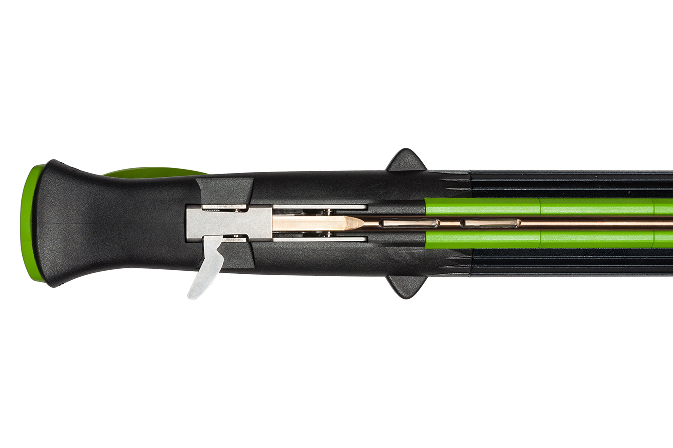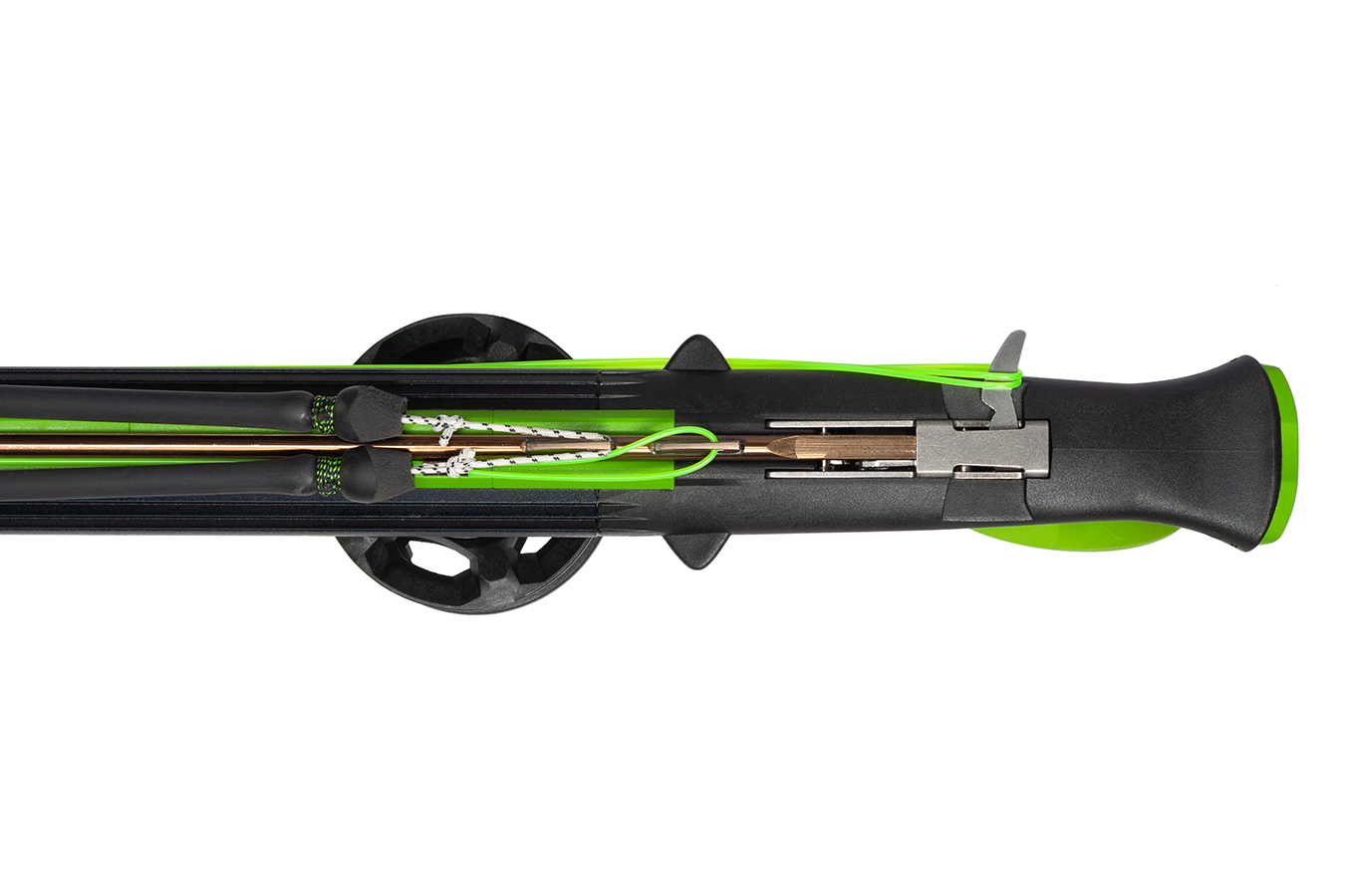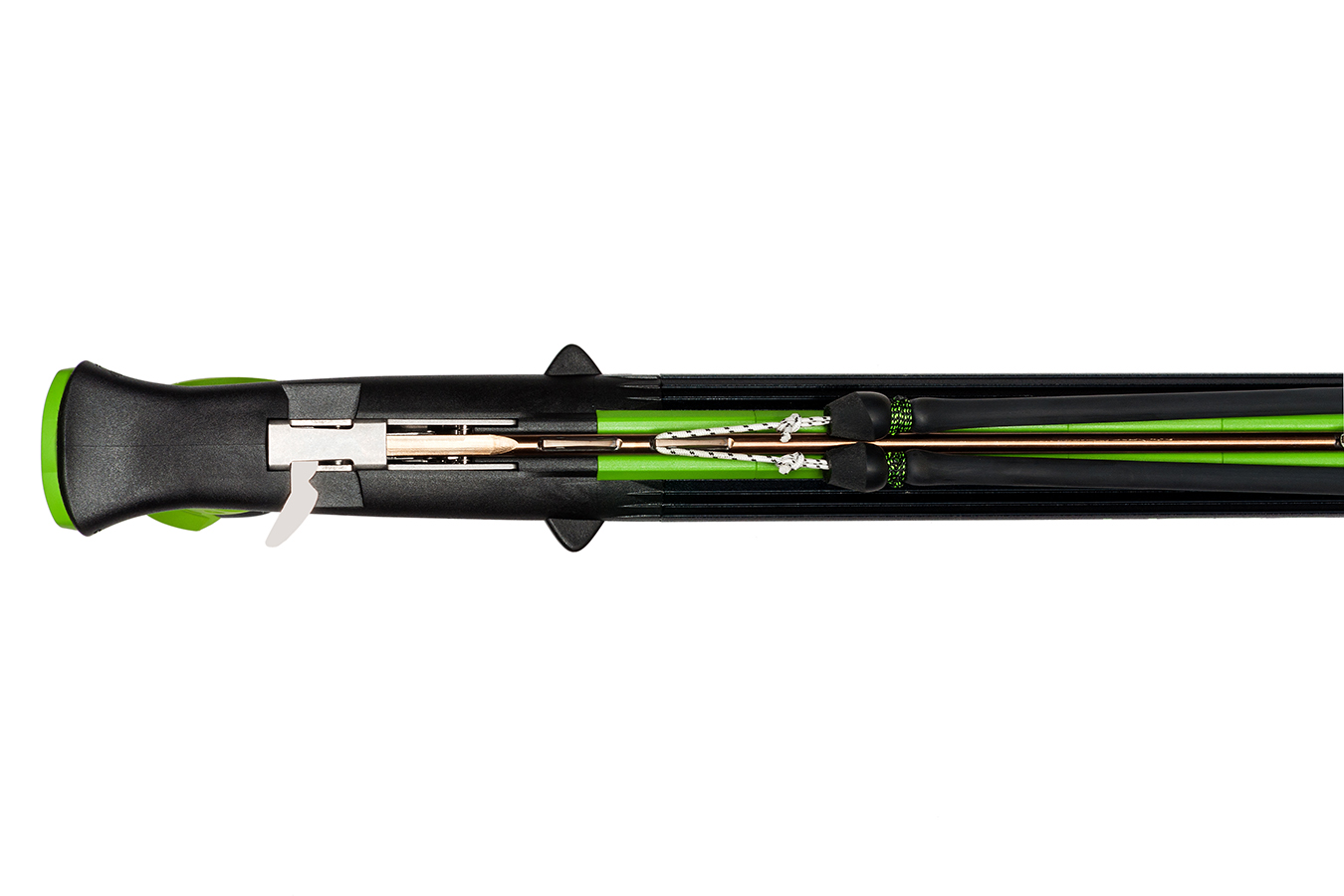 - вдоль всего ствола установлена наборная направляющая из тефлона, что дает лучшее скольжение гарпуна, увеличивает точность и мощность выстрела;