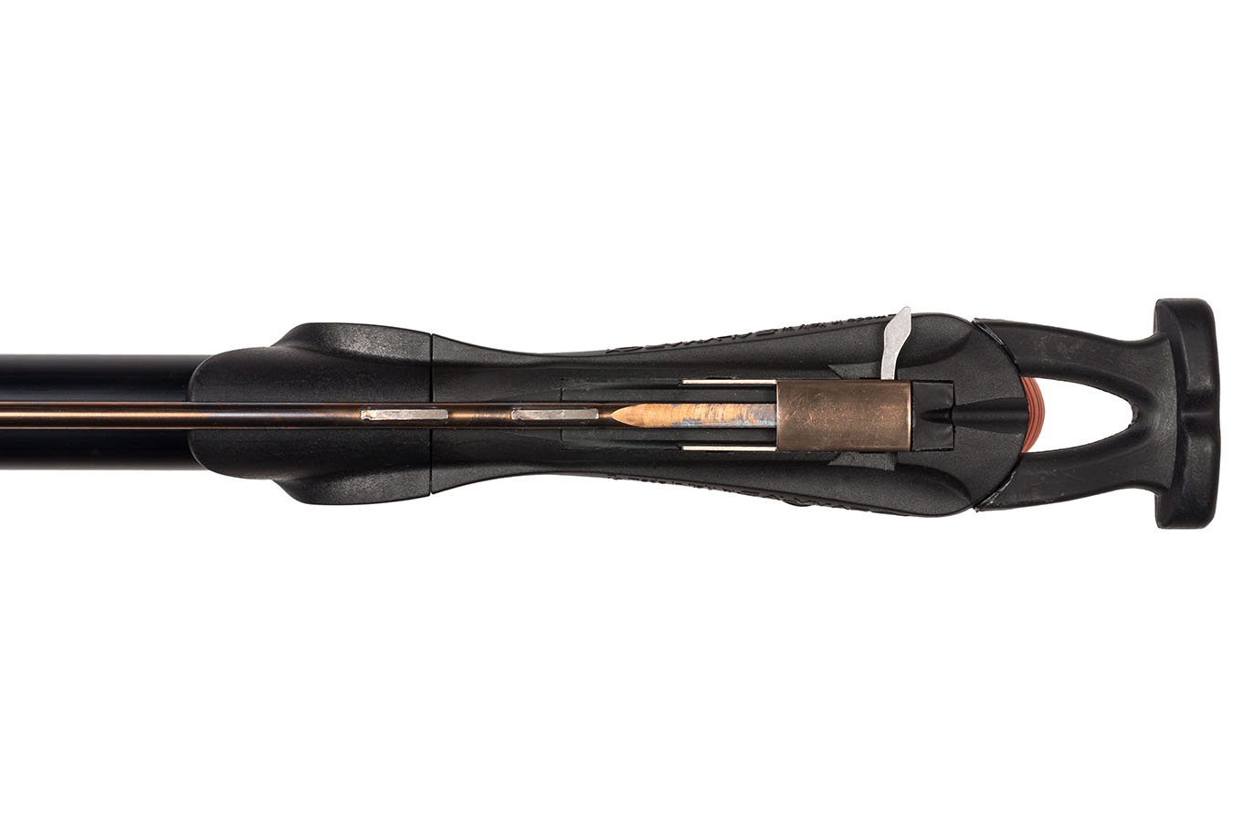 - По всей длине ствола идет направляющая для гарпуна, что значительно увеличивает точность выстрела и удобство заряжания ружья.