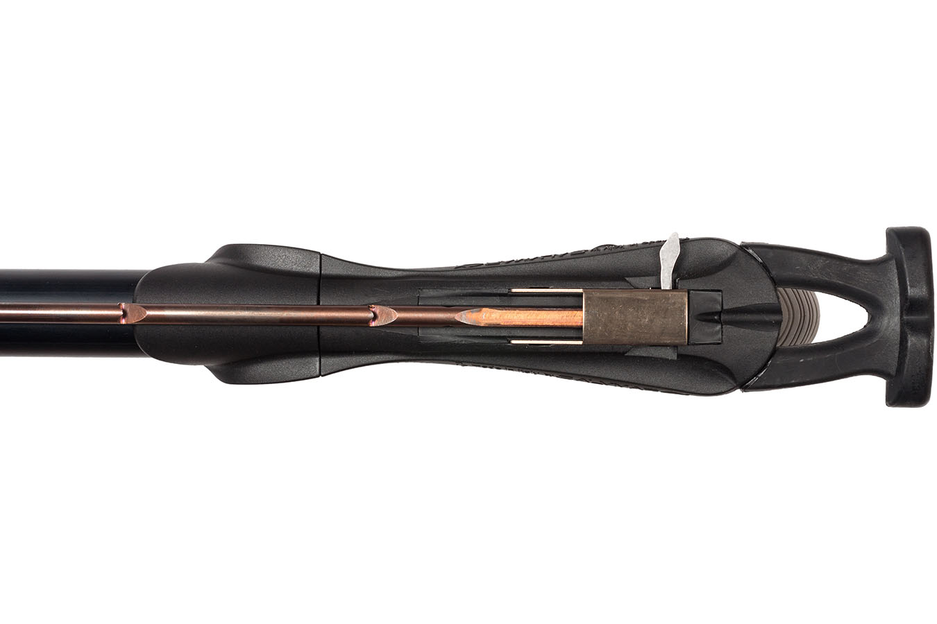 - По всей длине ствола идет направляющая для гарпуна, что значительно увеличивает точность выстрела и удобство заряжания ружья.