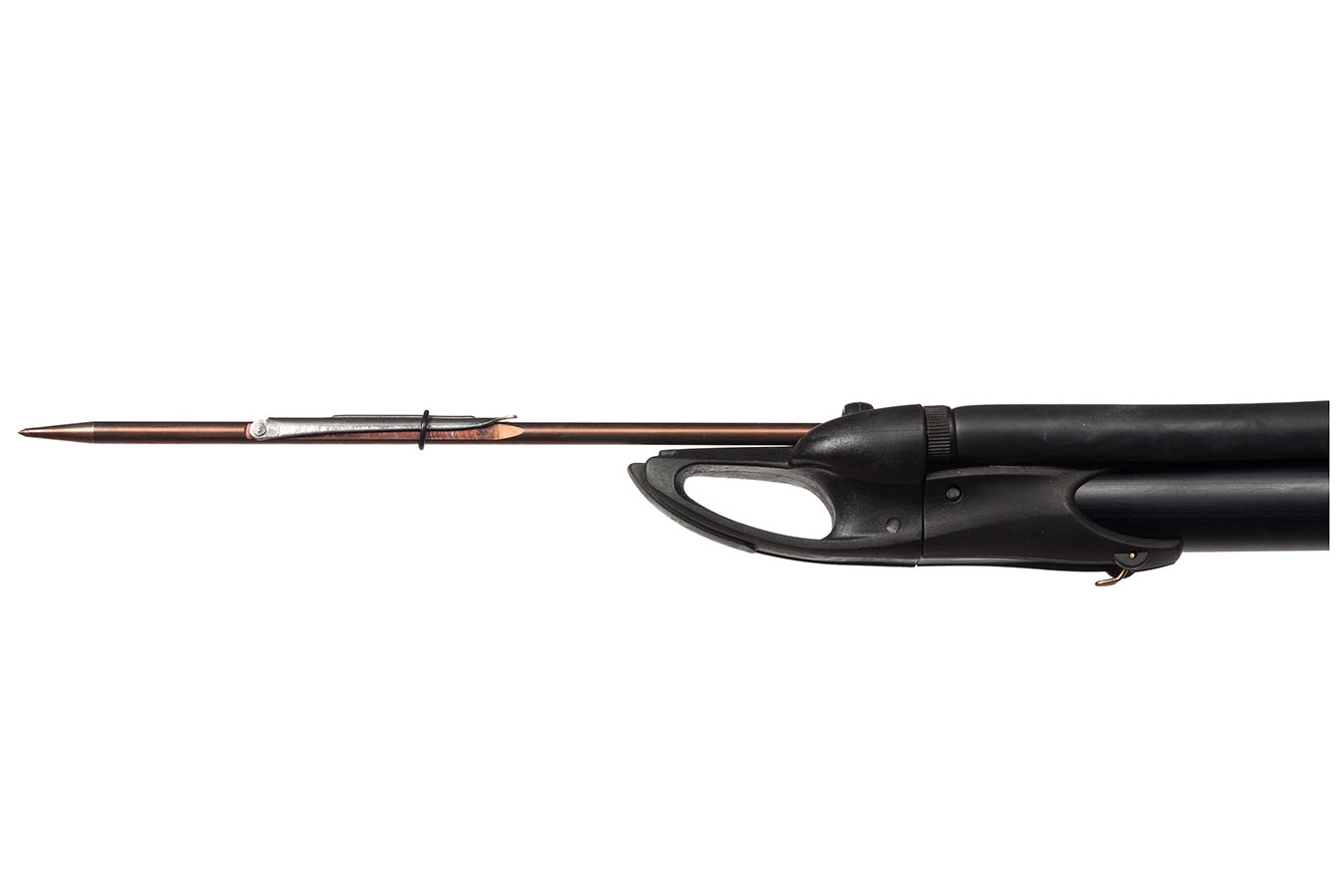 - Линесброс боковой и сделан из той же нержавеющей стали 17-4 PH. Линесброс, кстати, максимально смещен к торцу ружья, что увеличивает длину рабочего линя.