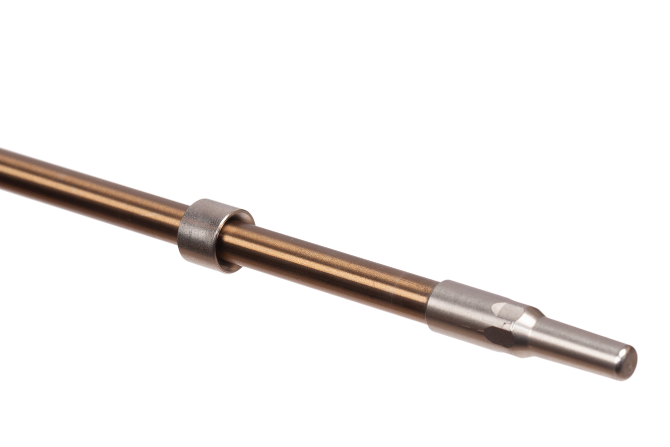 А обновленный гарпун оснащается специальной стопорной втулкой и новым хвостовиком. (Смотрите фото) Износ манжеты в 90% случаев происходил из-за того что разбивался хвостовик гарпуна. При ударах об него центровочной шайбы, у него появлялись острые края, которые и рвали манжету. И приходилось следить за этим и периодически менять хвостовики. Но новая пара (центровочная шайба + хвостовик) исключают такую ситуацию, за счет того, что край хвостовика сточен под 45 градусов по отношению к гарпуну, а новое центровочное кольцо имеет противоположную заточку под 45 градусов. И теперь при ударе от промаха или рывке трофея, шайба не развальцовывает край хвостовика, а напротив зажимает его.