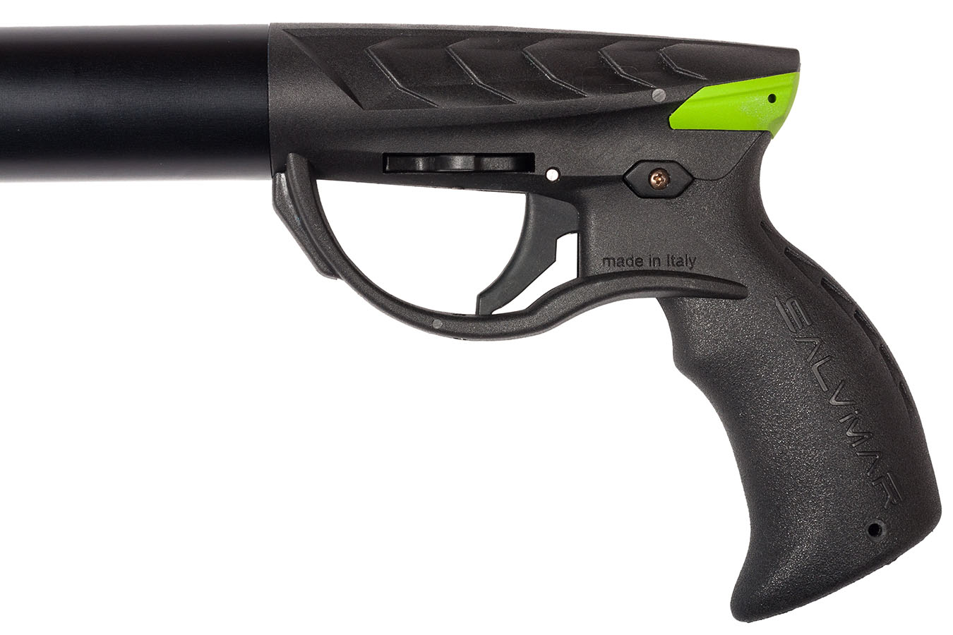 - у подводного пневматического ружья Salvimar Predathor Vuoto Special Edition 40 см, совсем не свойственная Итальянцам, большая удобная рукоять расположенная под наклоном в 30 градусов к ресиверу (в общем-то когда берешь это ружье в руку все становится понятно);