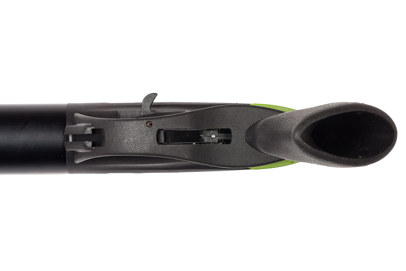 Что это означает? - В отличии от простого пневматического подводного ружья в пневмовакуумном ружье, при заряжании в ствол не попадает вода и при выстреле поршень толкает исключительно гарпун и не толкает паразитный объем воды как в обычных пневматических подводных ружьях.