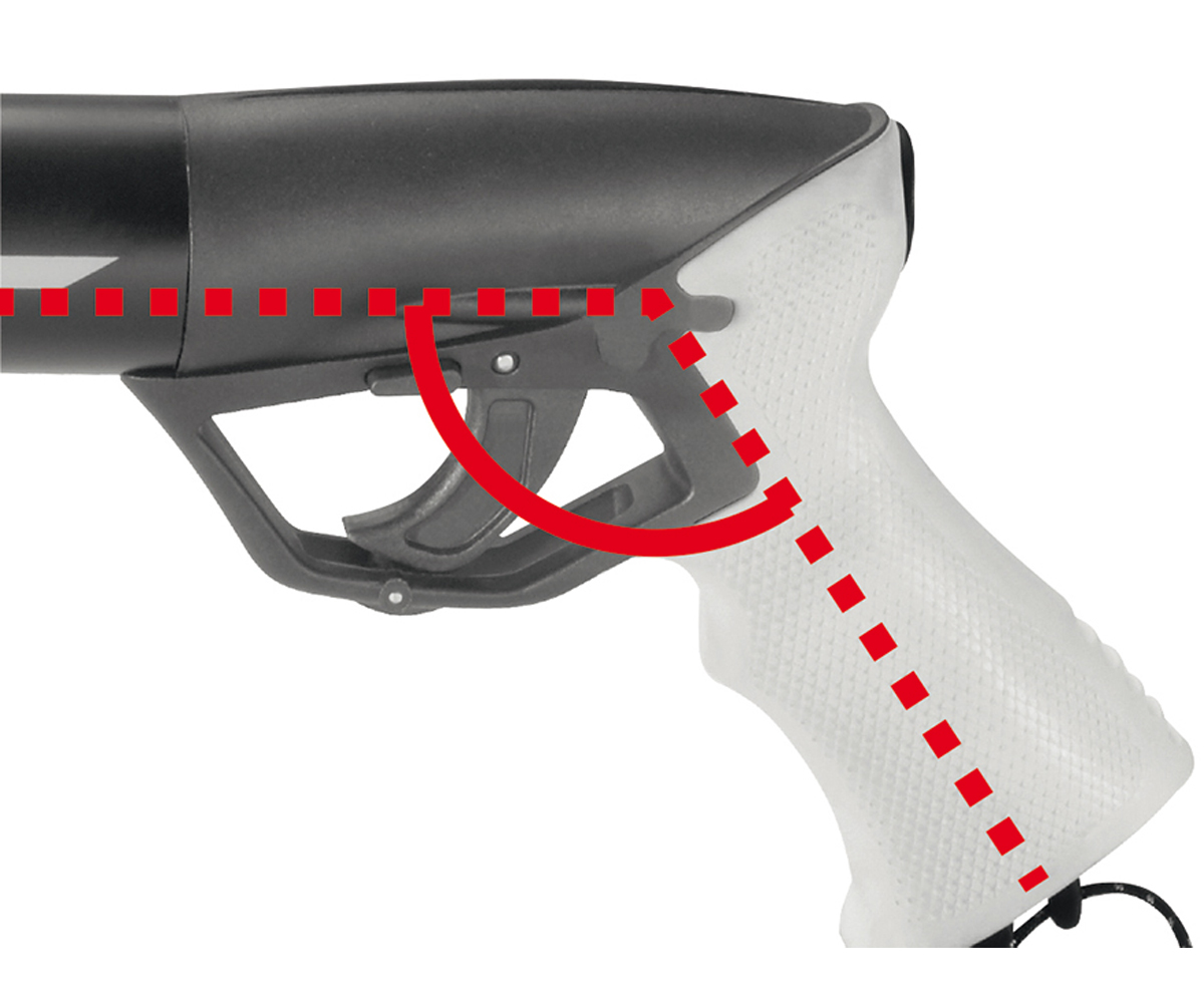 Прицельная дальность в воде – 2-3 м.Рукоятка сделана из мягкой резины.Наклонная рукоятка ( 40’)Заряжалка расположена внутри рукоятки ружья.Благодаря особому расположению отверстий для отвода воды в оголовье, улучшена скорость выстрела и устойчивость ружья при стрельбе.На 50% уменьшено усилие спуска.Новые поршень и ограничитель отдачи, система полностью реконструирована для еще большей надежности.Увеличилась мощность за счет двойных воздушных отверстий.Повысилась надежность ружья, упростилось его обслуживание.