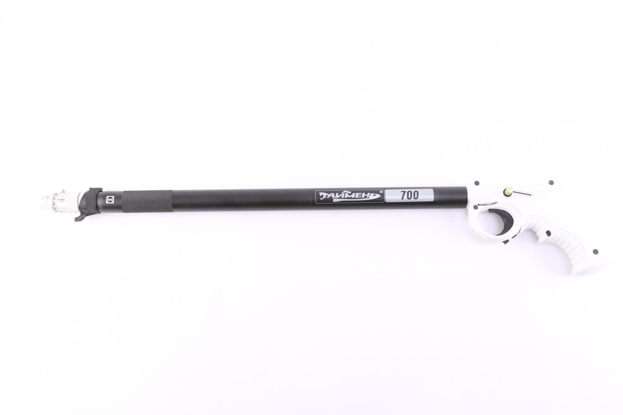 Ружьё для подводной охоты пневматическое(пневмовакуумное) Таймень PVRM-RV 700 ф8(У) БЛС, универсальное подводное ружьё длинной 70 см, для охоты в воде с прозрачностью от 3 метров. Дальность боя до 5 метров. Гарпун диаметром 8 мм обеспечивает наилучшую пробивную способность и реже гнется (в сравнении с более тонкими гарпунами). Универсальная рукоятка дает возможность использовать ружьё как правой так и левой рукой. Регулятор боя дает возможность уменьшит силу выстрела на 40% что делает охоту на мелководье в коряжнике и камнях более удобной. Боковой линесброс позволяет удобно установить катушку и фонарь, линь хорошо лежит вдоль ружья не собирает траву и не цепляется за коряжник. Резиновая манжета в надульнике создает в стволе вакуум, уменьшает попадание в ствол мелких частиц (песка, ила) а также воды, отсутствие воды в стволе при движении поршня и гарпуна значительно повышает силу выстрела и обеспечивает эффективность охоты при небольшом усилии заряжания.