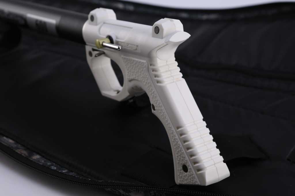 Использование полиуретанового утолщения на хвостовике гарпуна с задней привязкой (бегунком) исключает заклинивание скользящей втулки и так же значительно уменьшает звук при выстреле, в сравнении с аналогичными конструкциями.